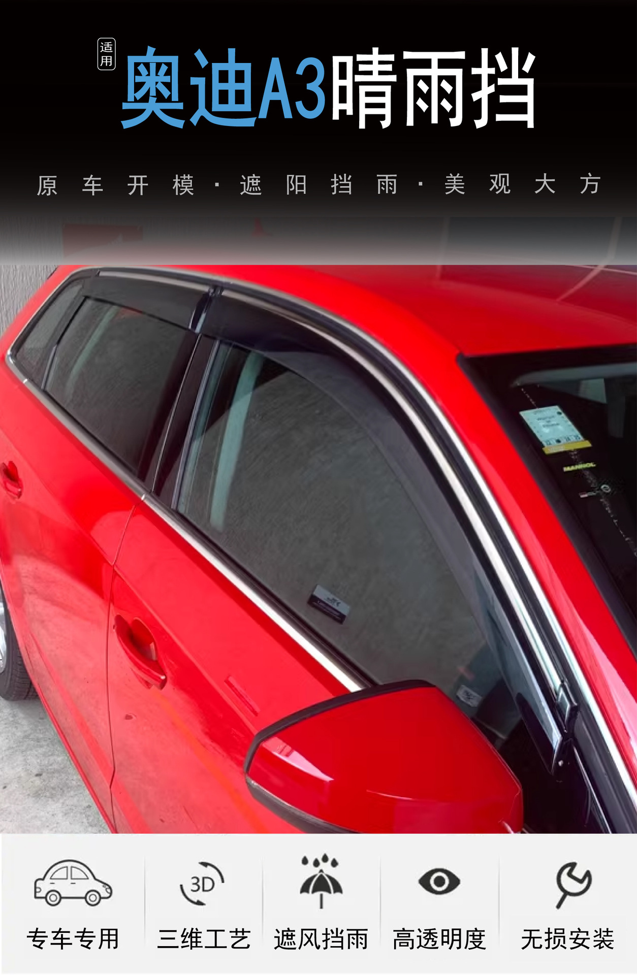 비 4 아크릴 자동차 비 방패를 방지하기 위해 2012-2021 아우디 A3 창 수정의 국경 간 적용스토어 가기