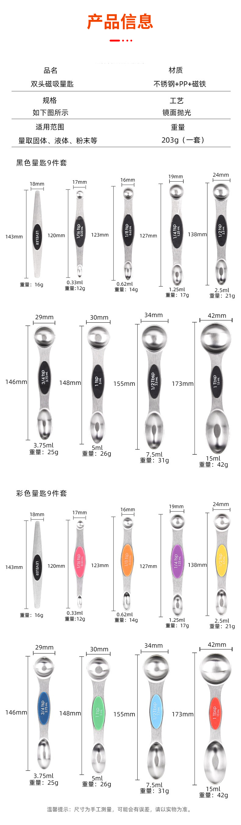 스테인레스 스틸 베이킹 가정용 양념 측정 스푼 주방 요리 조미료 스푼 더블 헤드 측정 스푼 컬러 블랙