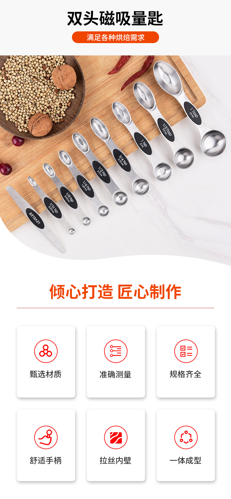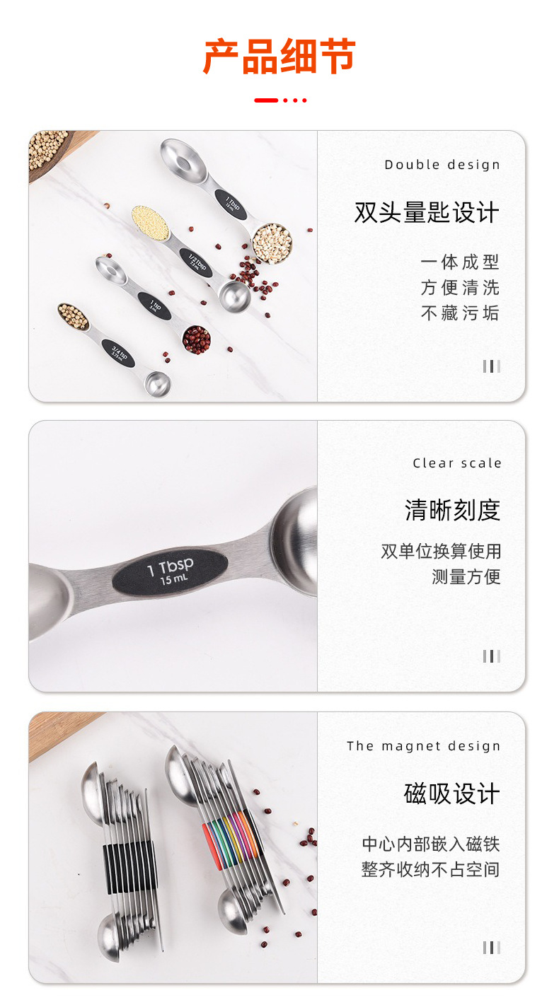 스테인레스 스틸 베이킹 가정용 양념 측정 스푼 주방 요리 조미료 스푼 더블 헤드 측정 스푼 컬러 블랙스토어 가기