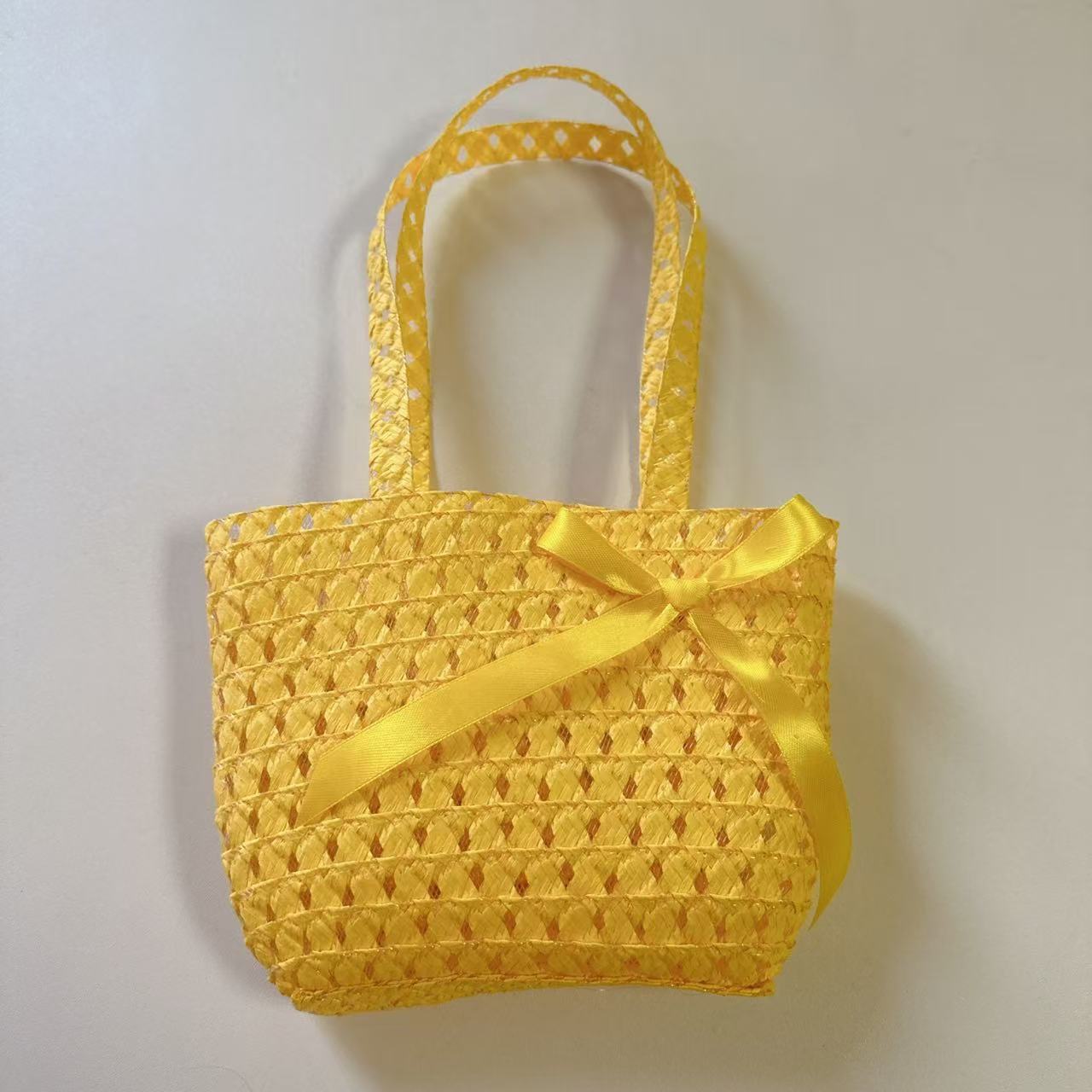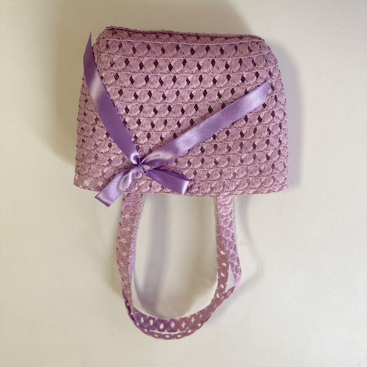 새로운 활 어린이 밀짚 모자 핸드백 세트 소녀 밀짚 태양 모자 해변 모자 도매스토어 가기