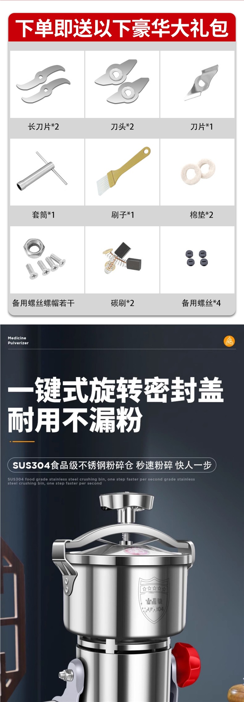 • [2023 모델 2500g] 304 식품 등급 스테인레스 스틸 + 고출력 구리 모터