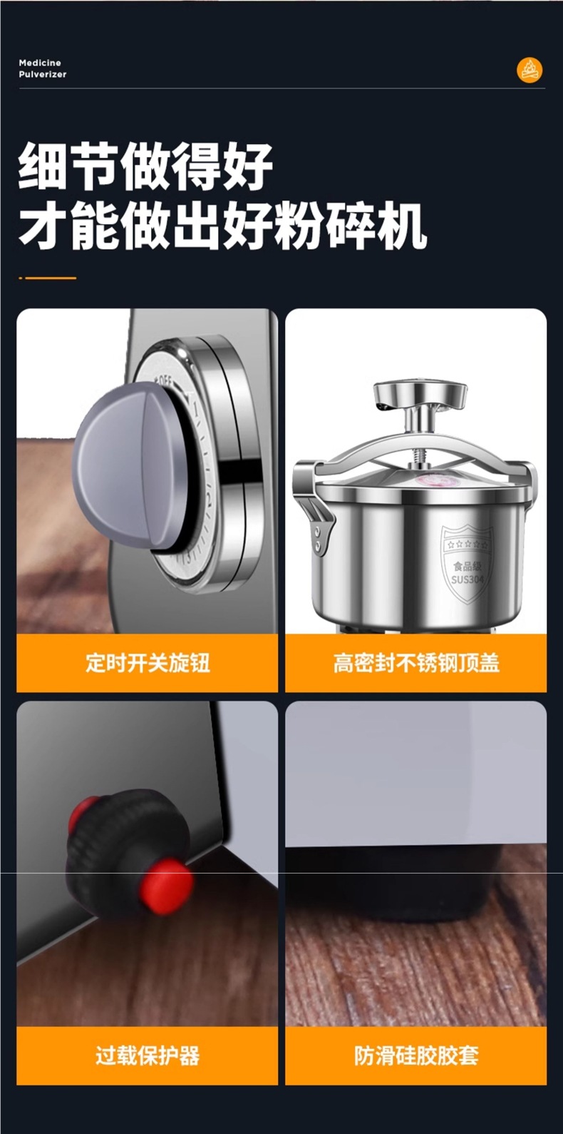 • [2023 강화 버전 1500g] 304 식품 등급 두꺼운 스테인레스 스틸 + 고출력 구리 모터