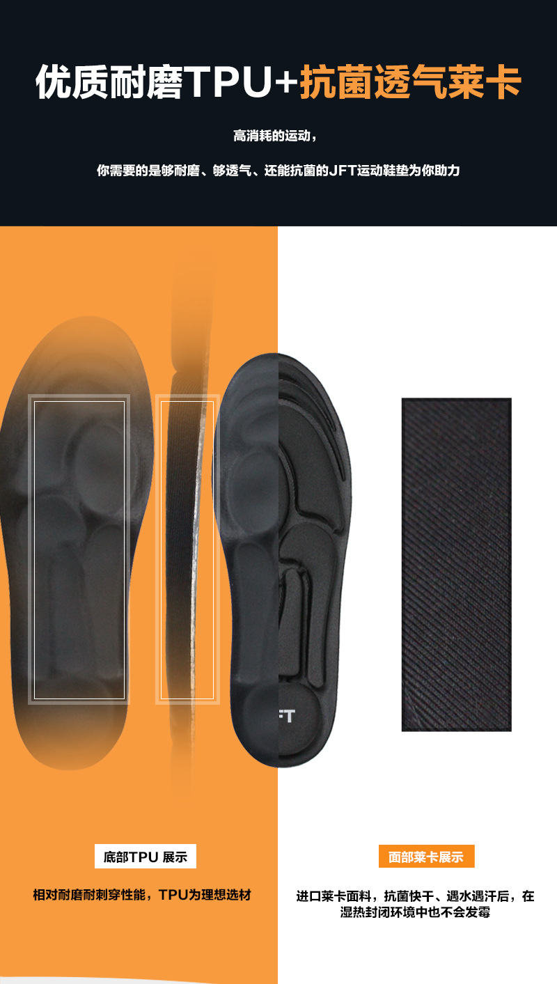 JFT 에어 쿠션 깔창 충격 흡수 스포츠 깔창 오래 서서 피곤하지 않은 등산 군사 훈련 발목 보호 무릎 보호