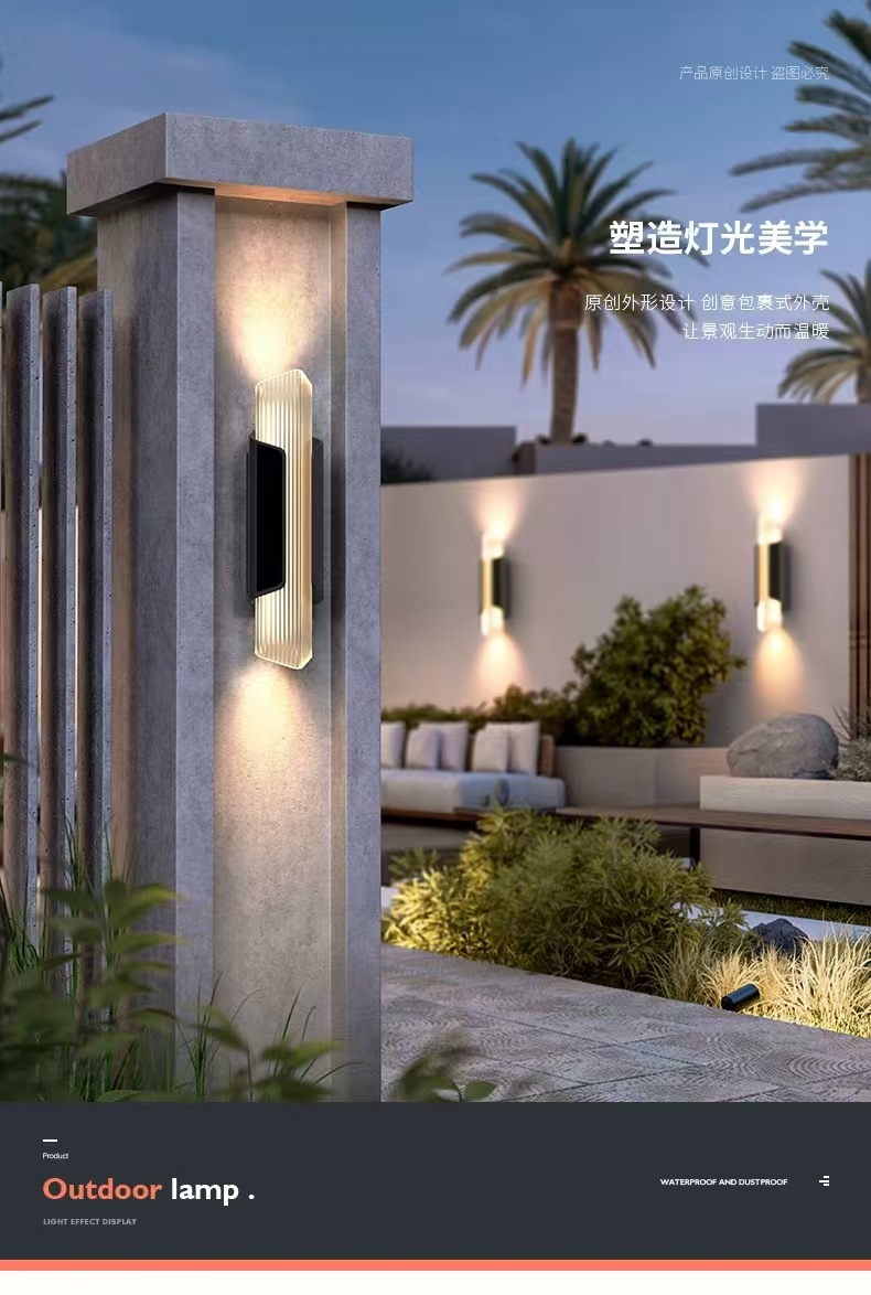 야외 벽 램프 방수 안뜰 벽 램프 빌라 외부 벽 태양 벽 램프 현대 발코니 문 기둥 벽 램프