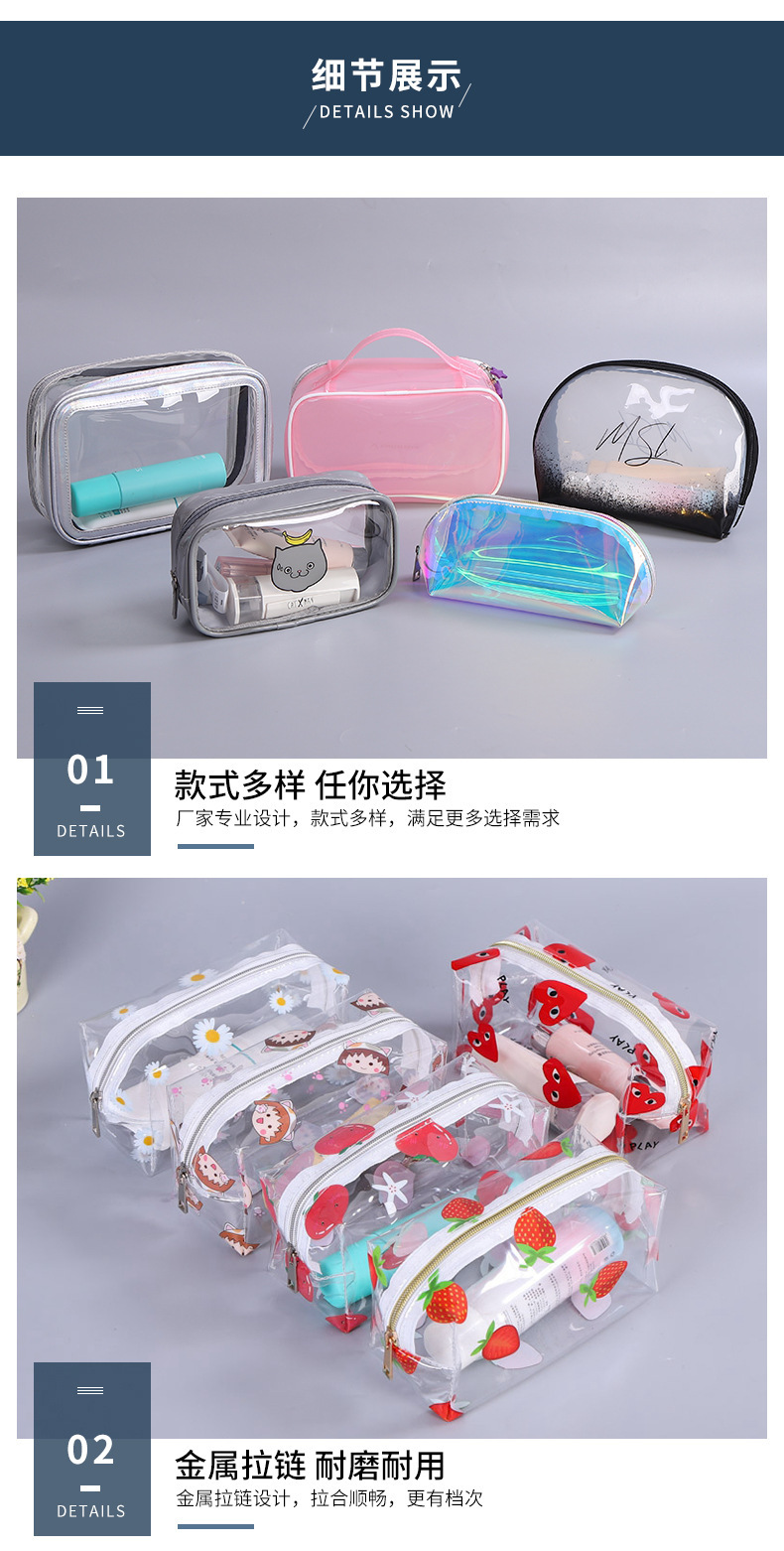재고 PVC 화장품 가방 투명 대용량 여성 휴대용 여행 플라스틱 지퍼 가방 다기능 세척 저장 가방스토어 가기
