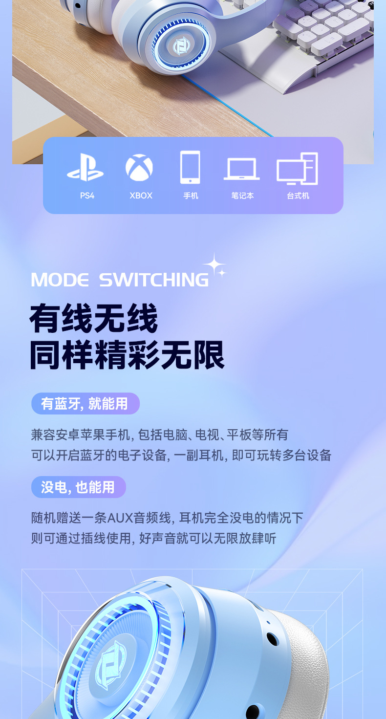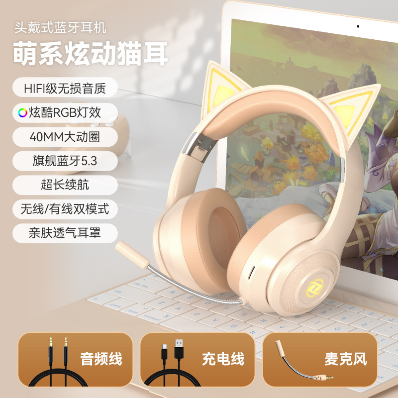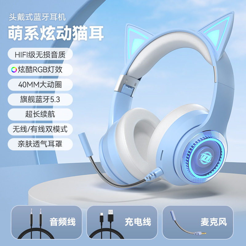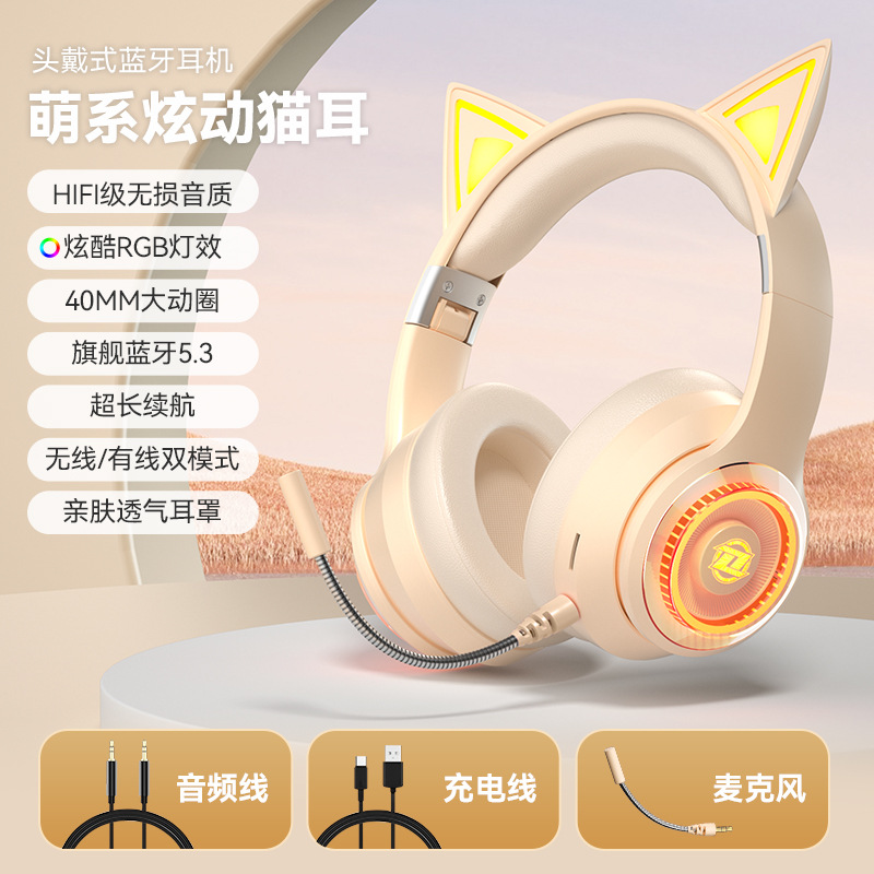 개인 모델 새로운 고양이 귀 헤드셋 무선 블루투스 헤드셋 전자 스포츠 앵커 그물 폭발스토어 가기