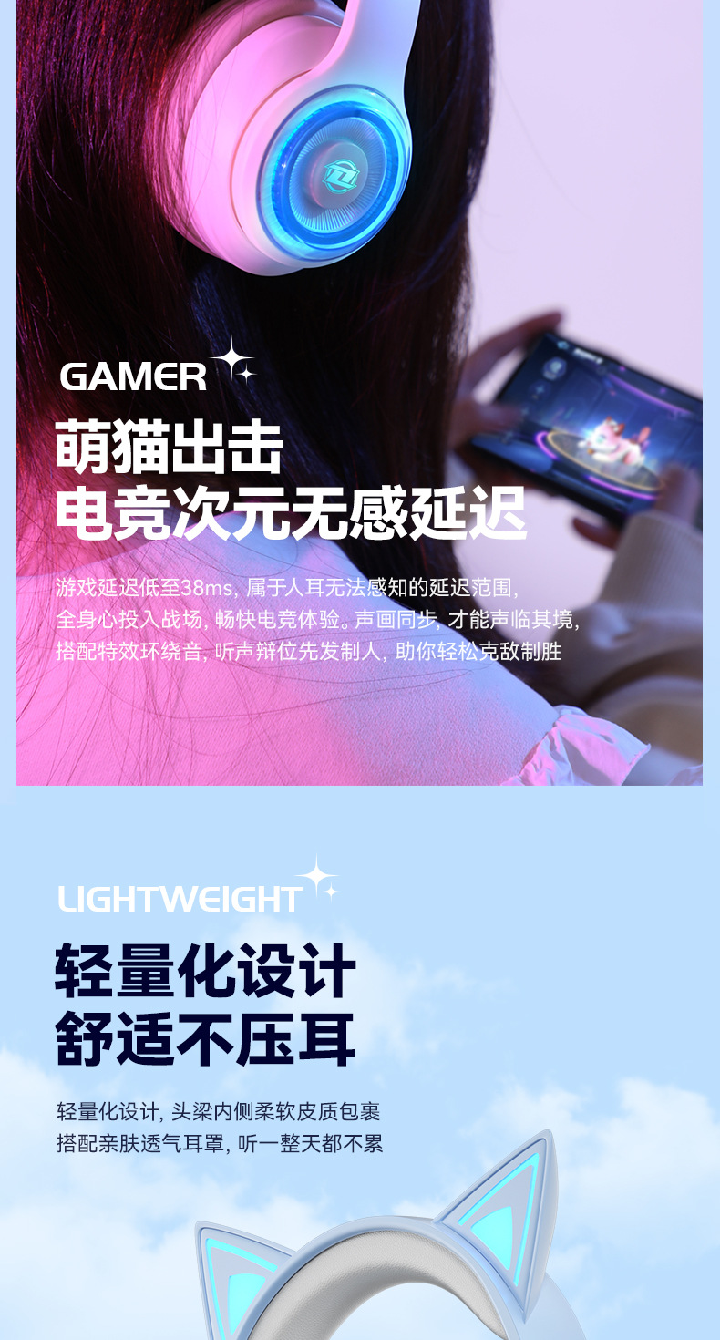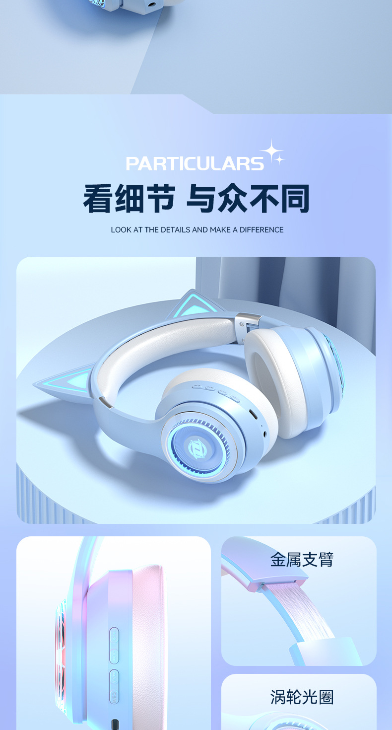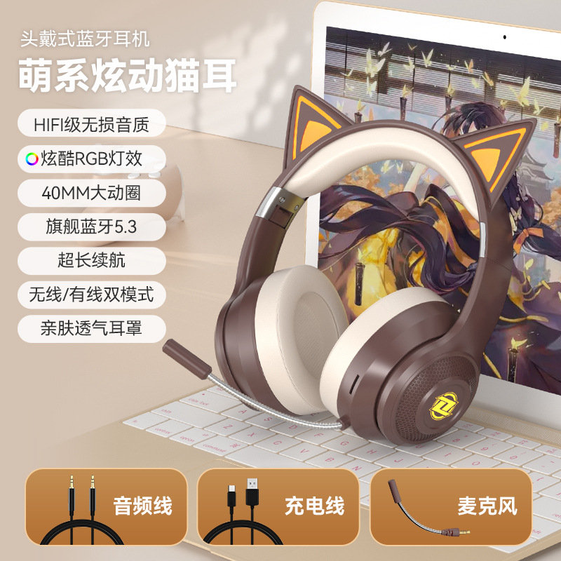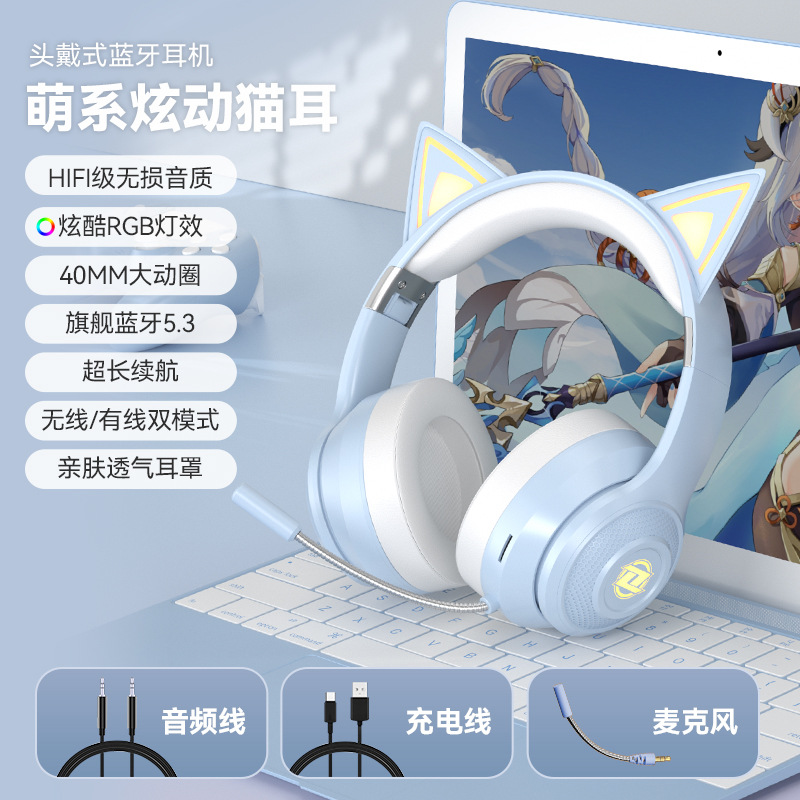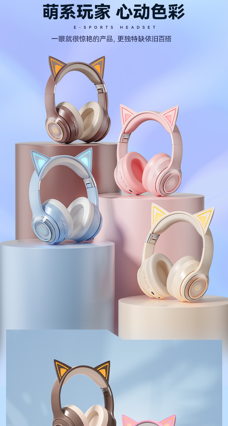 개인 모델 새로운 고양이 귀 헤드셋 무선 블루투스 헤드셋 전자 스포츠 앵커 그물 폭발