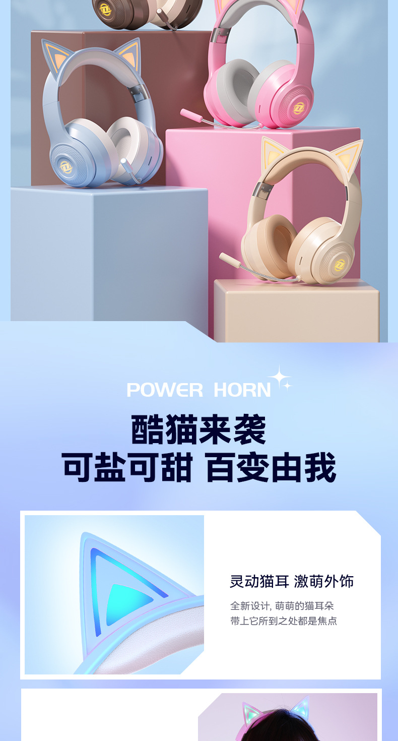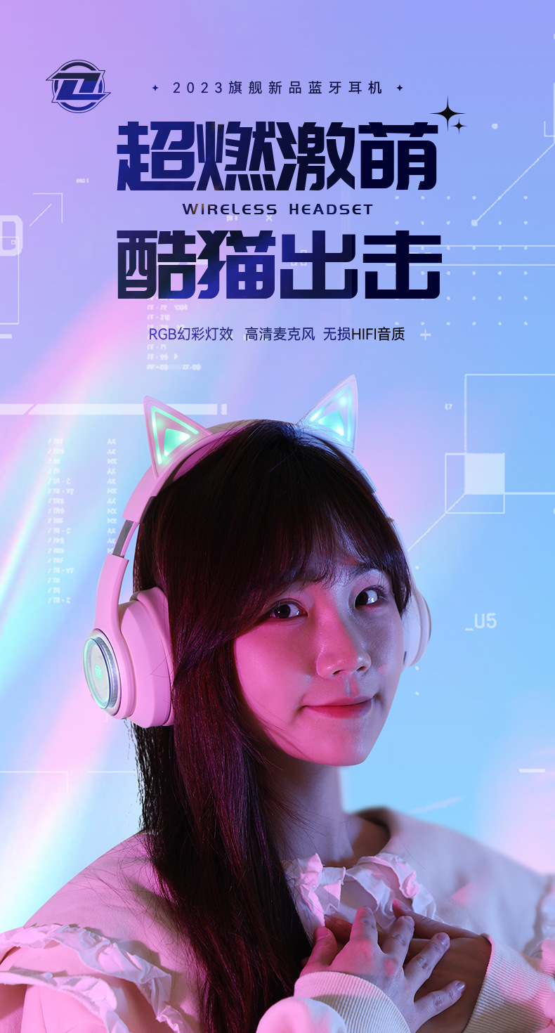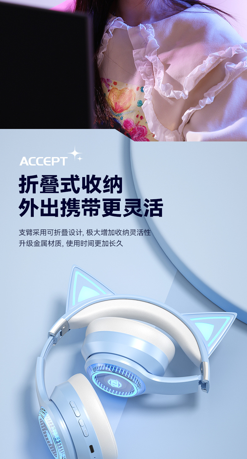 개인 모델 새로운 고양이 귀 헤드셋 무선 블루투스 헤드셋 전자 스포츠 앵커 그물 폭발