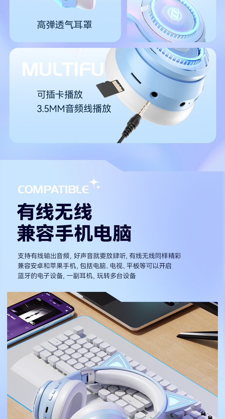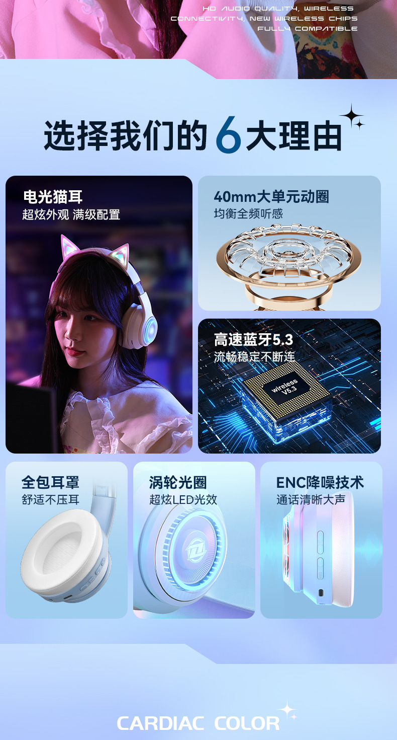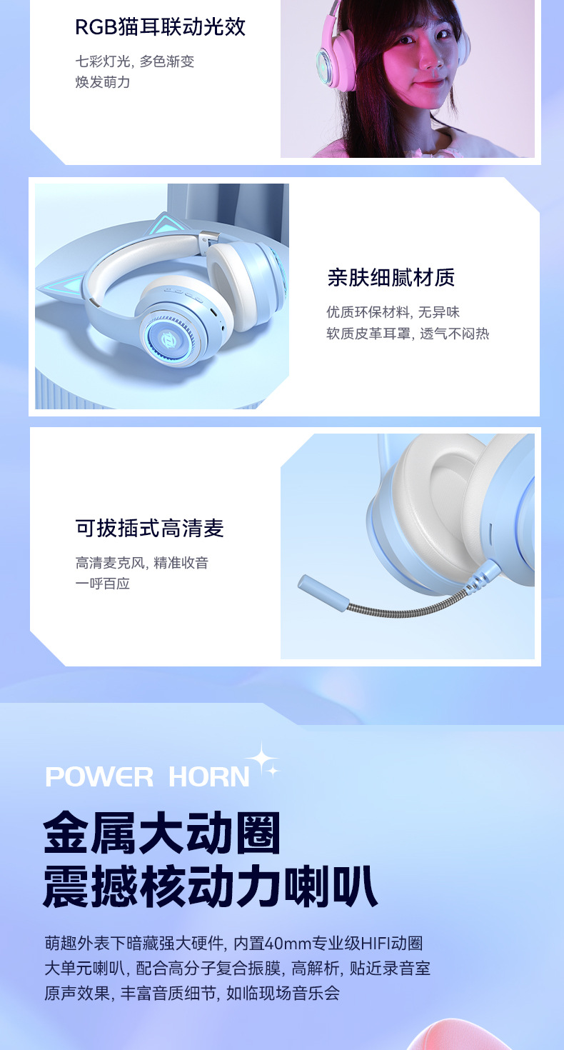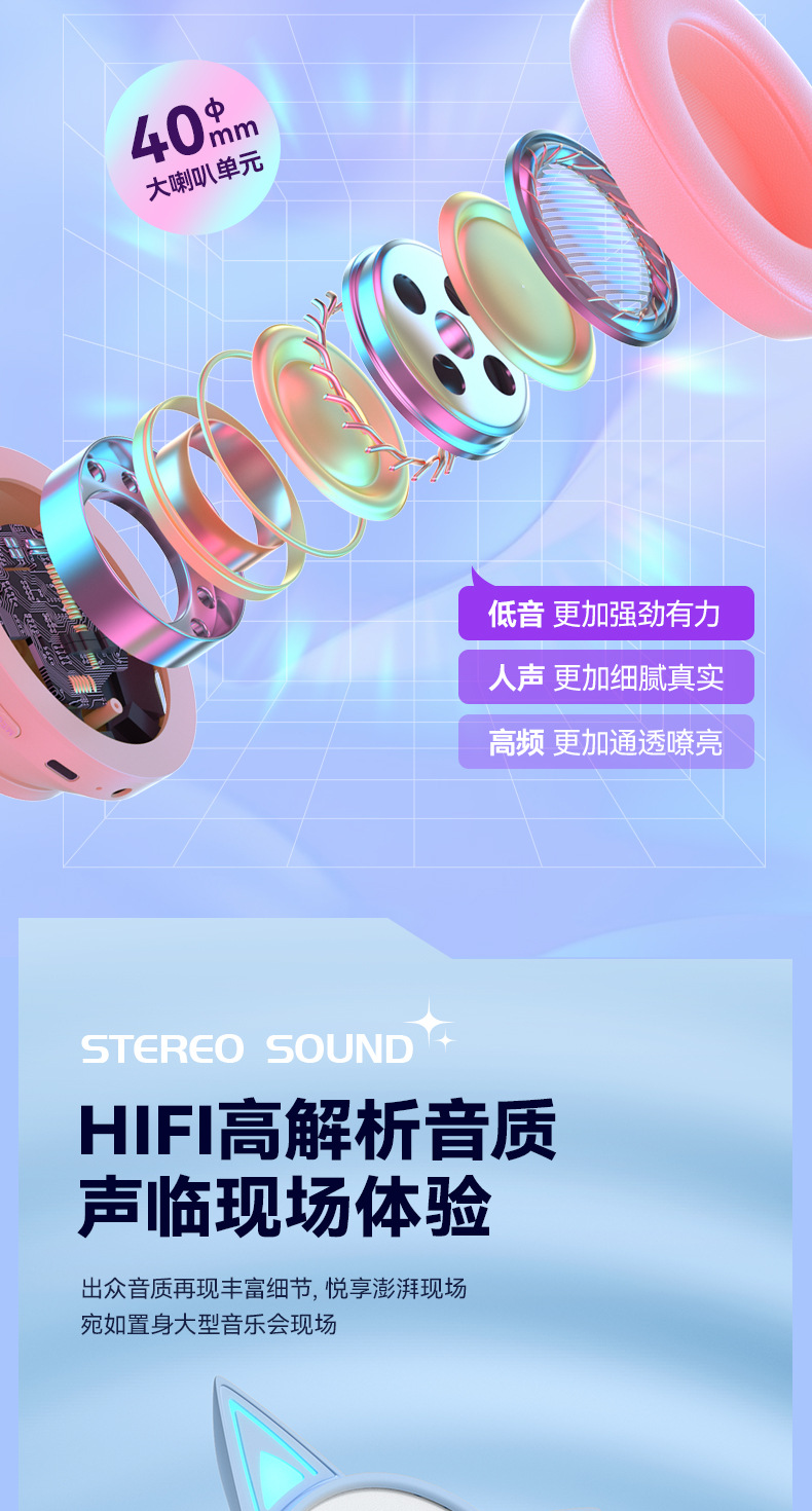 개인 모델 새로운 고양이 귀 헤드셋 무선 블루투스 헤드셋 전자 스포츠 앵커 그물 폭발
