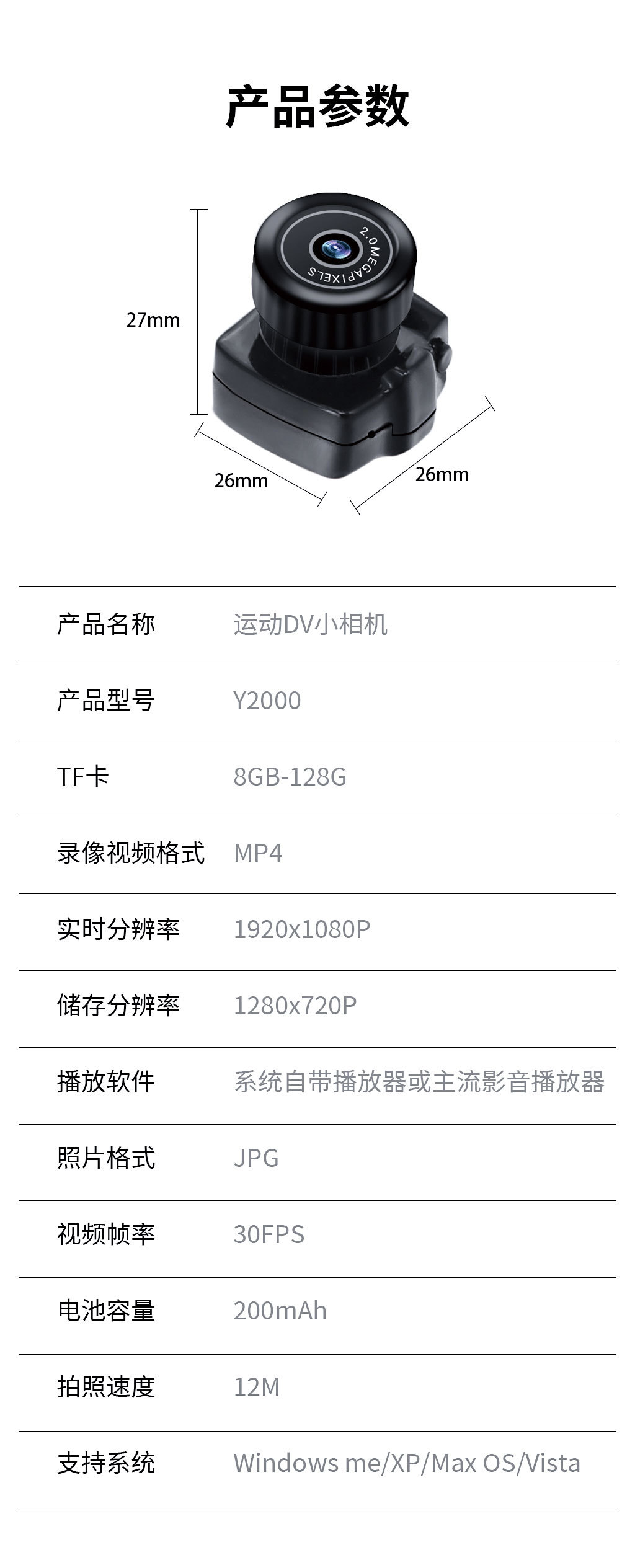 국경을 넘는 인기 제품 Y2000 고화질 카메라 1080p 항공 촬영 적외선 야간 투시 스포츠 학생 기록용 DV 소형 카메라스토어 가기