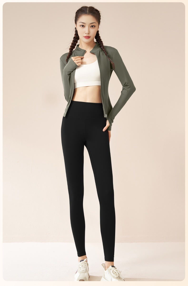 가을과 겨울 기모 요가 옷 최고 두꺼운 따뜻한 피트니스 옷 슬리밍 러닝 스포츠 자켓 긴 소매 카디건 여성