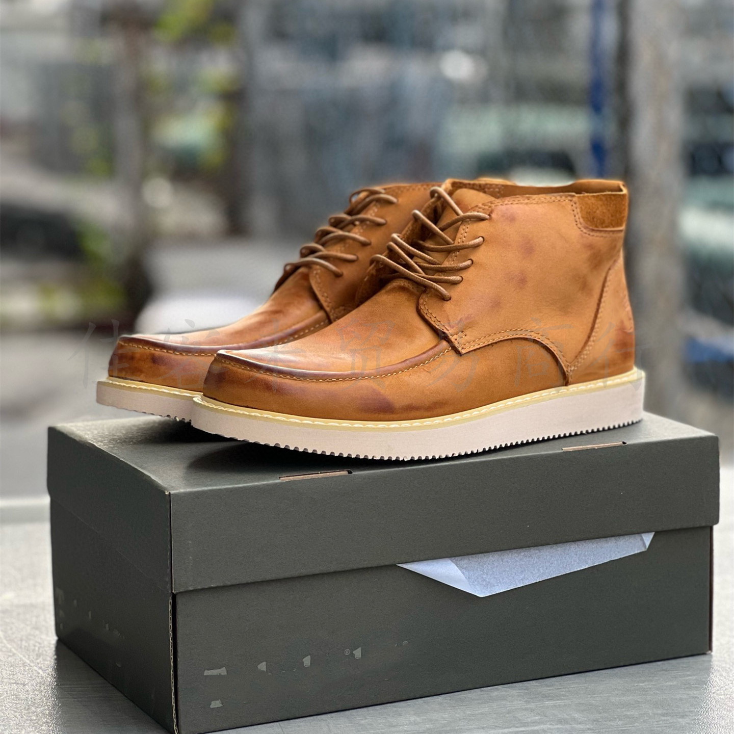 莞产真皮休闲擦色复古高帮男靴轻便舒适防滑工装运动户外系带男鞋