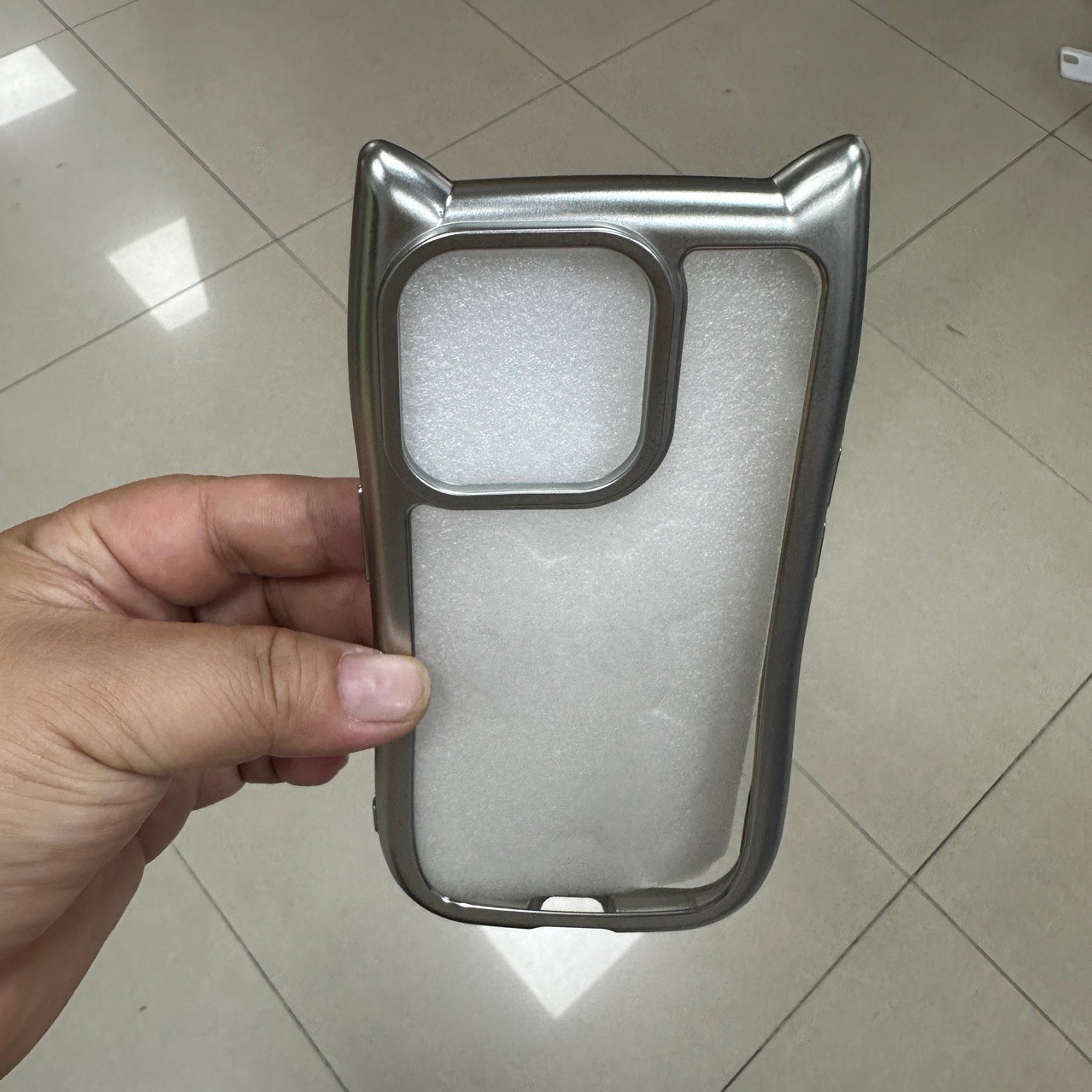 전기 도금 실버 고양이 귀 사과 16/15/14/13promax 전화 케이스 12/11 soft xr/xs 전기 도금 실버 프레임 8p