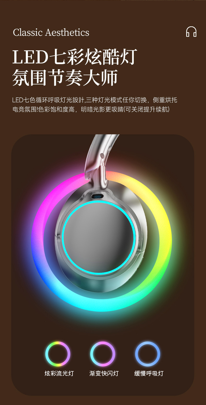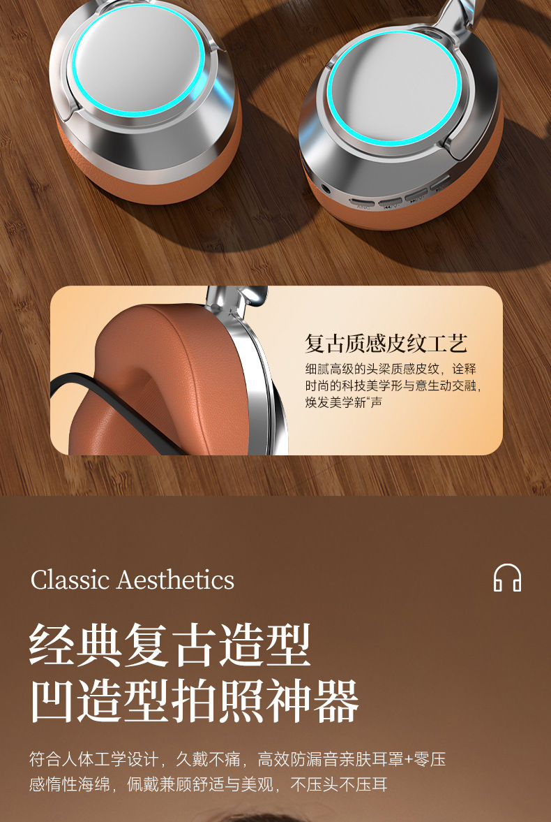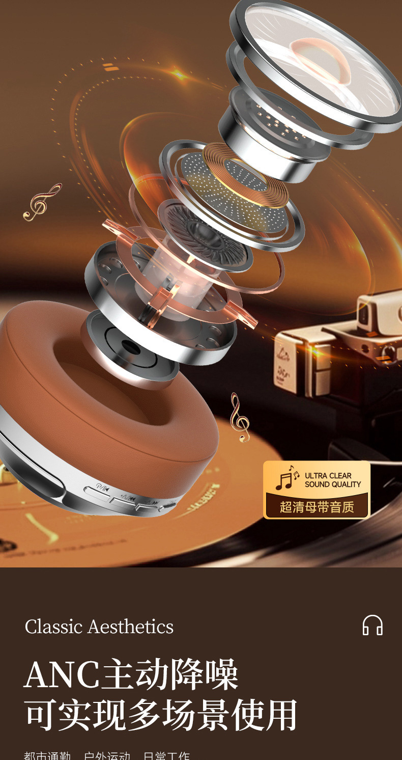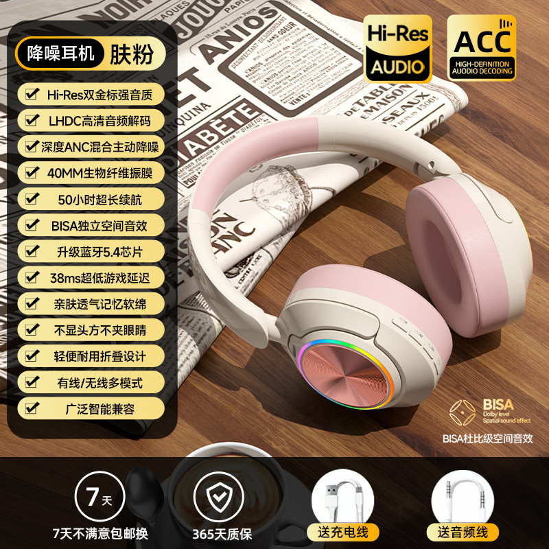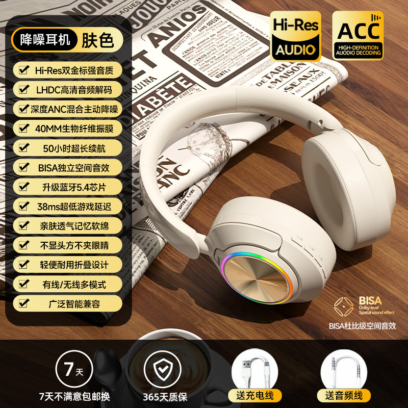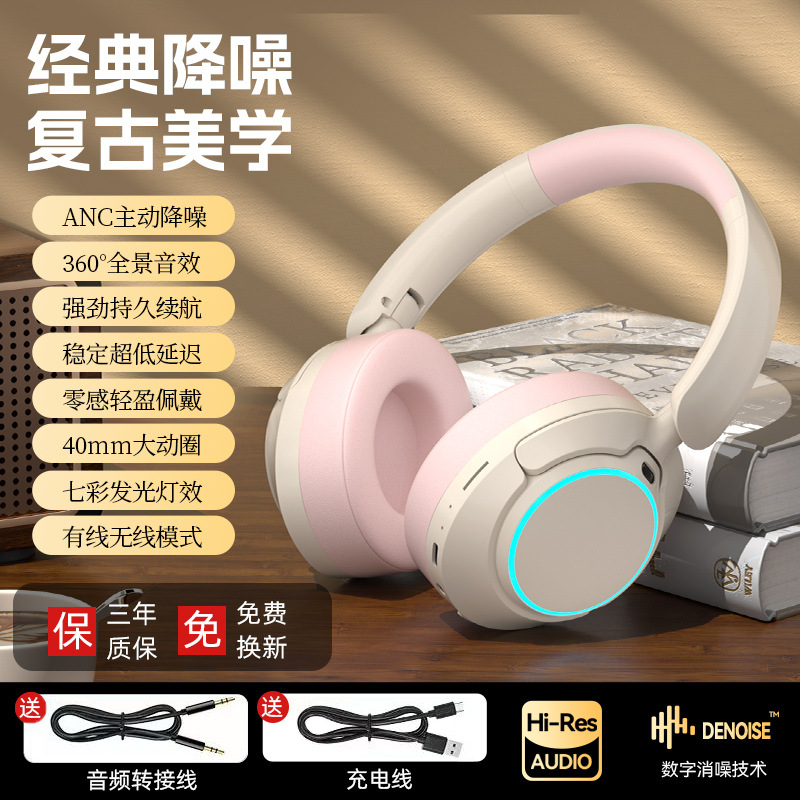 레트로 ANC 활성 소음 감소 헤드셋 무선 블루투스 헤드셋 헤드셋 헤비 베이스 제어 가능한 빛 핫 세일