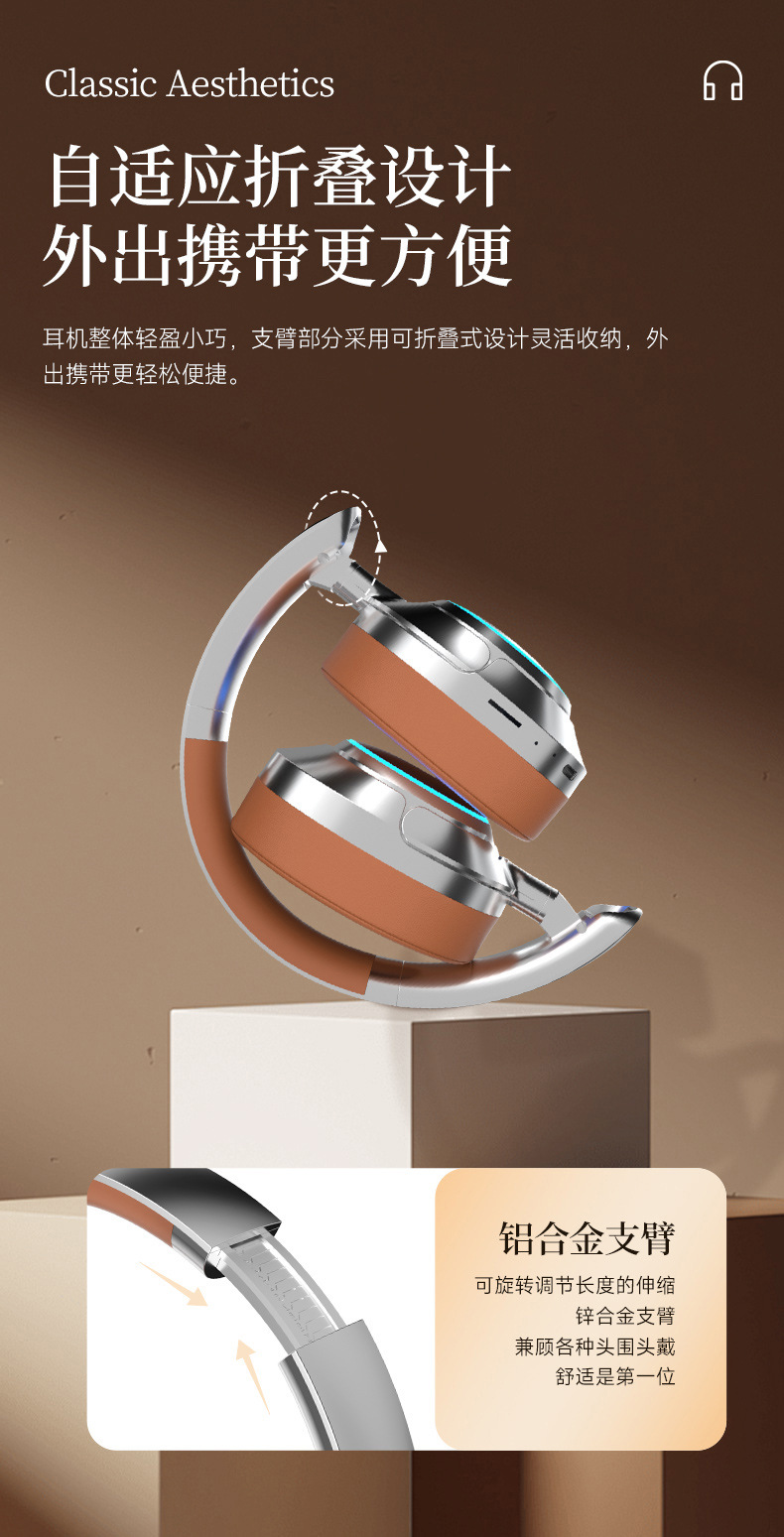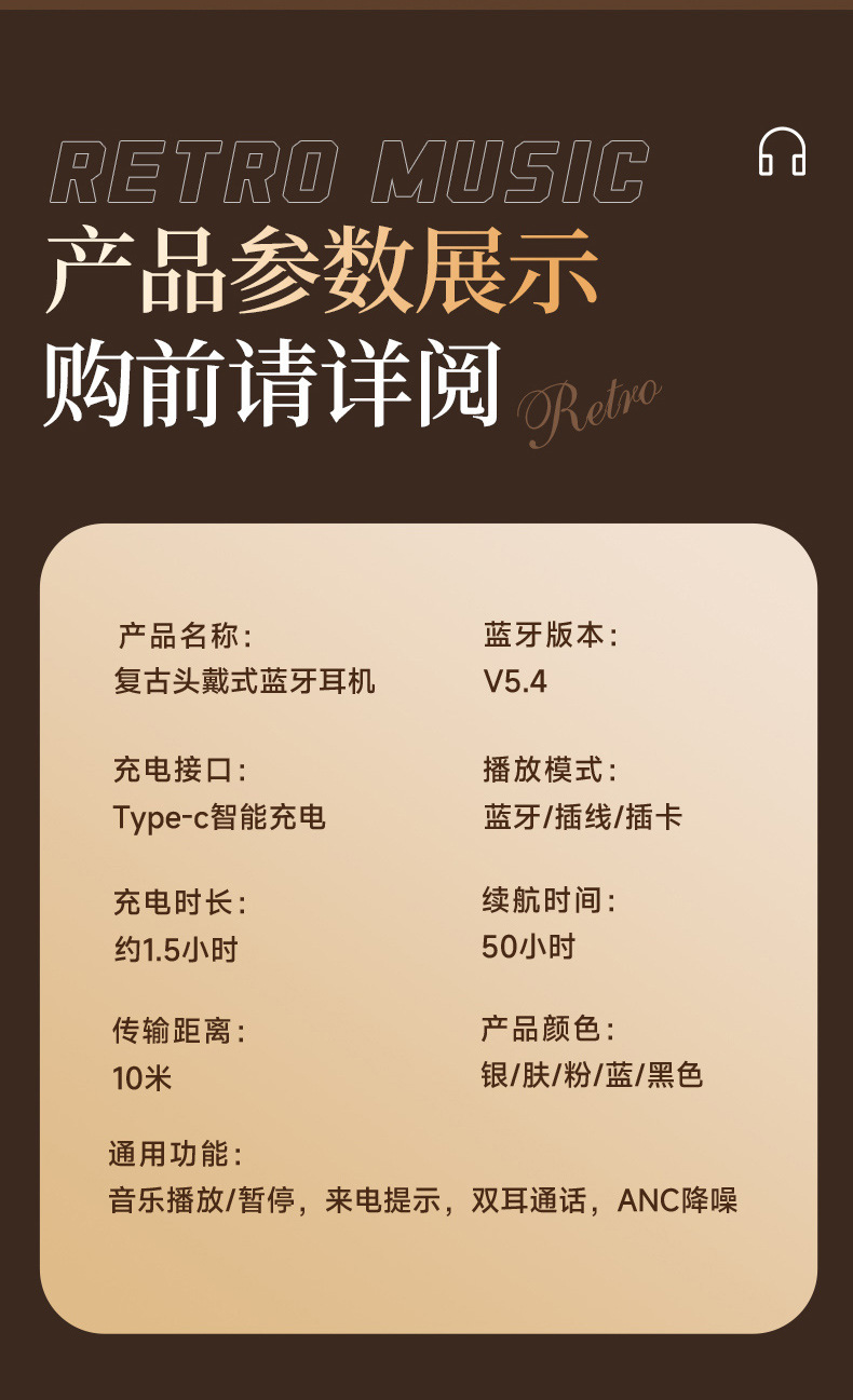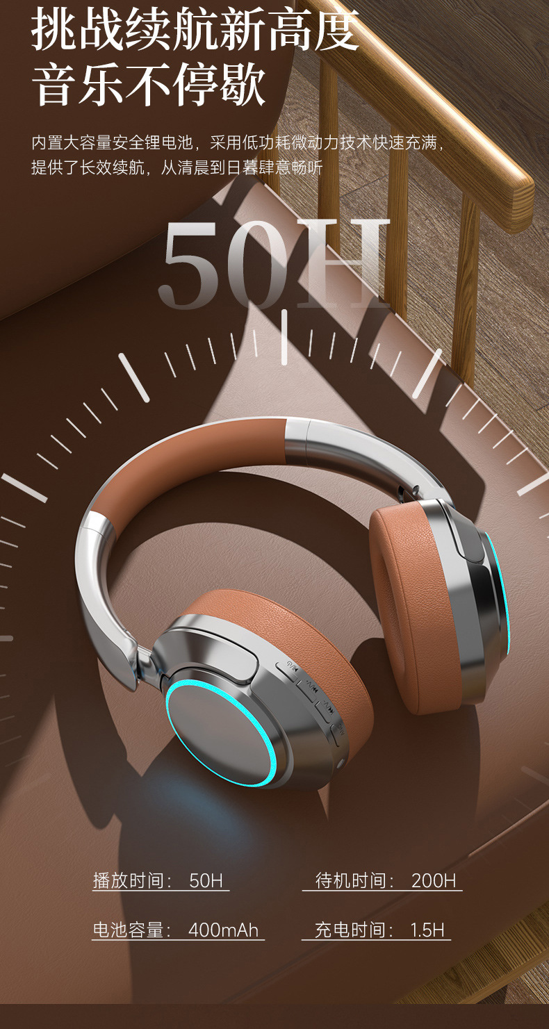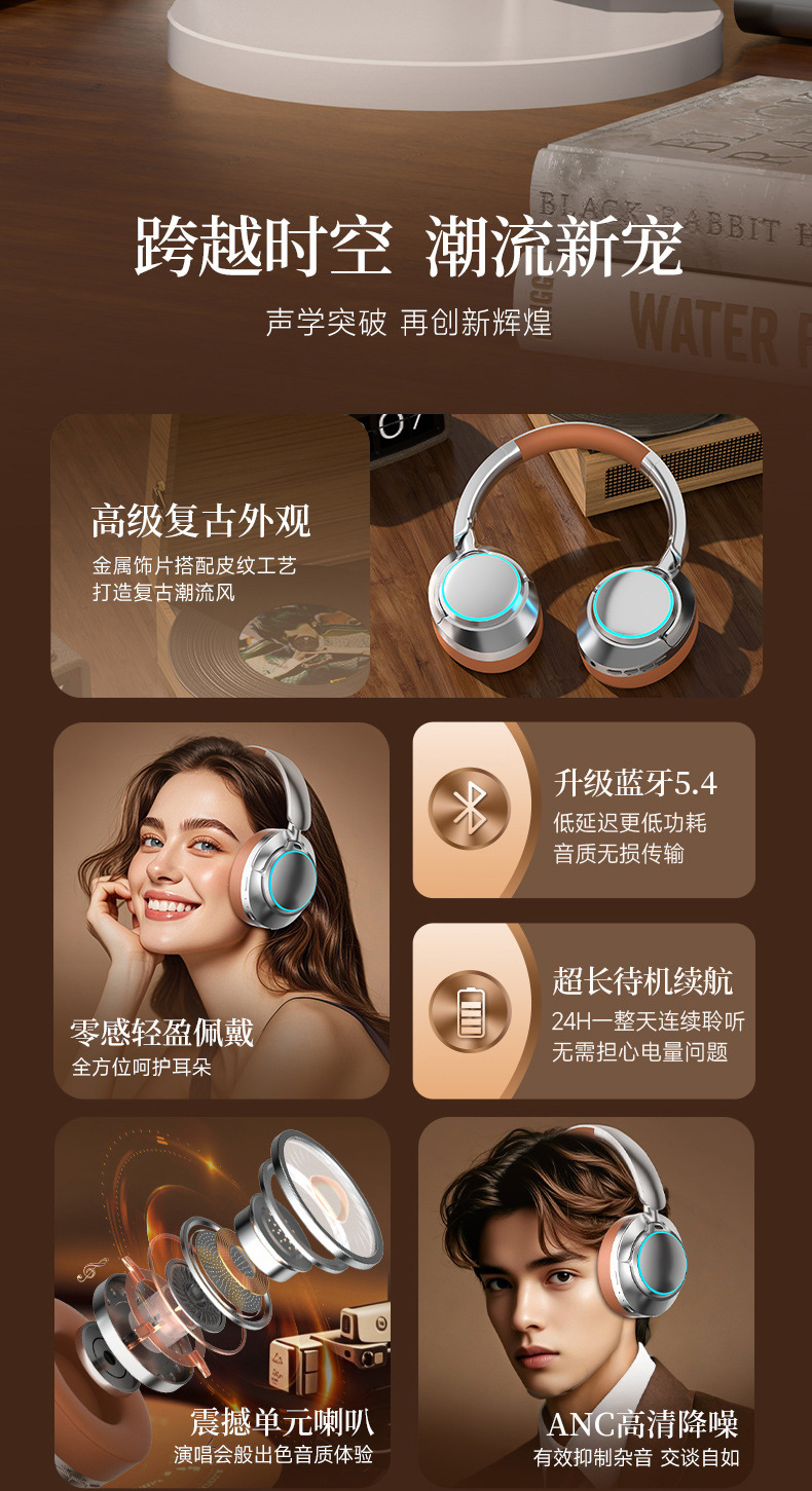 레트로 ANC 활성 소음 감소 헤드셋 무선 블루투스 헤드셋 헤드셋 헤비 베이스 제어 가능한 빛 핫 세일
