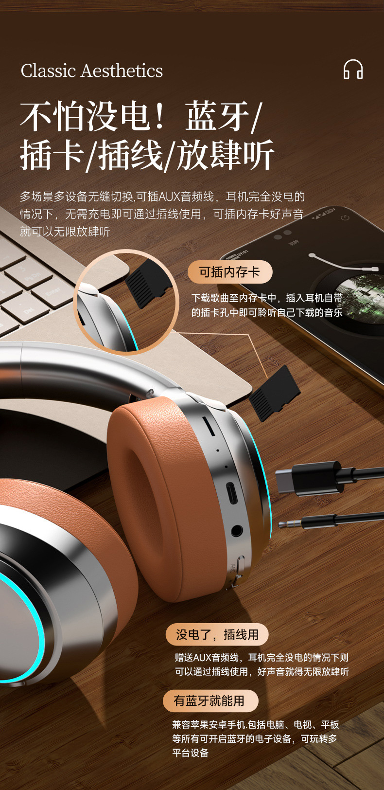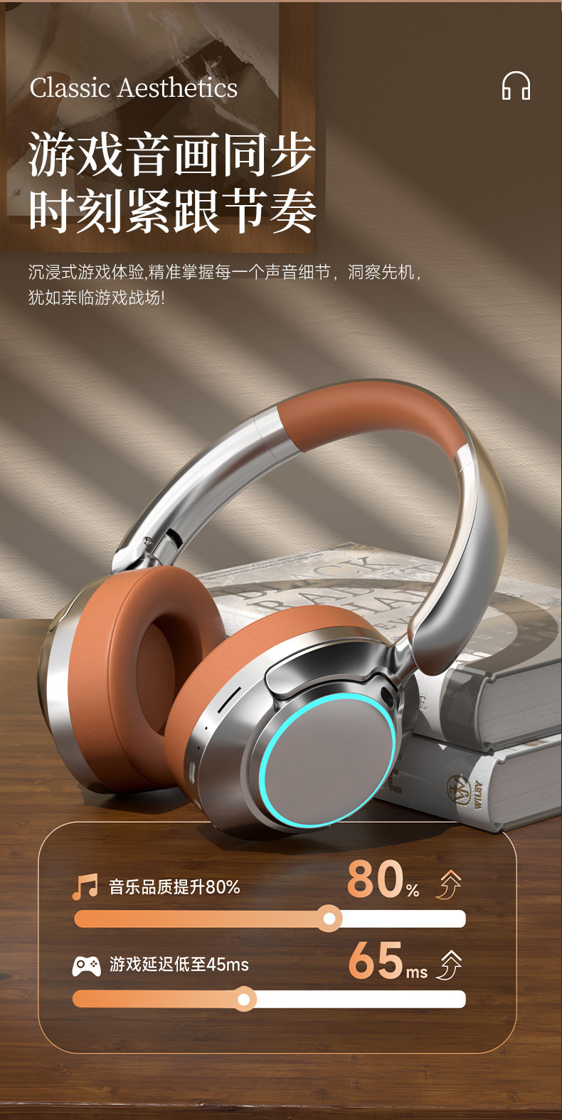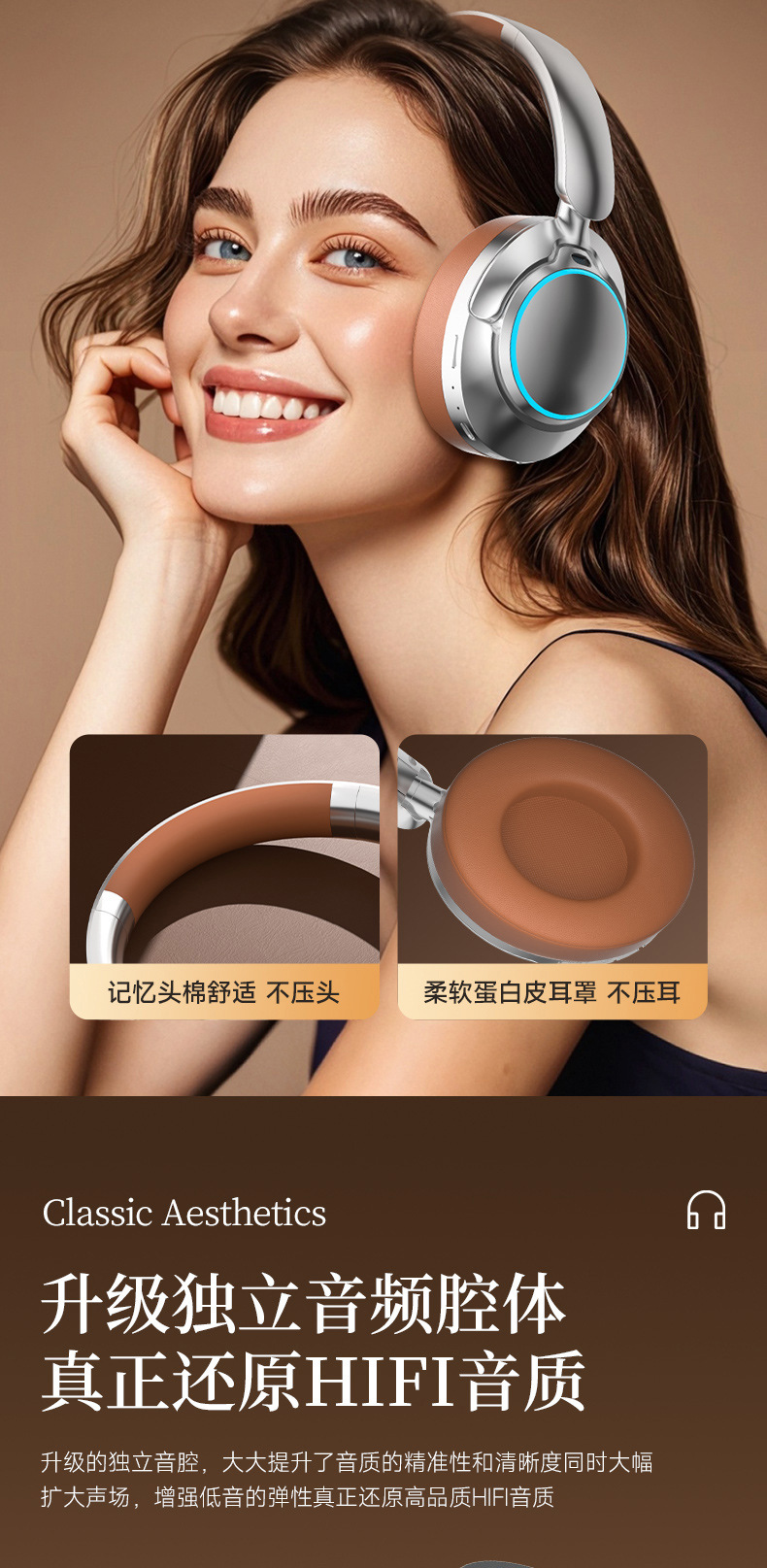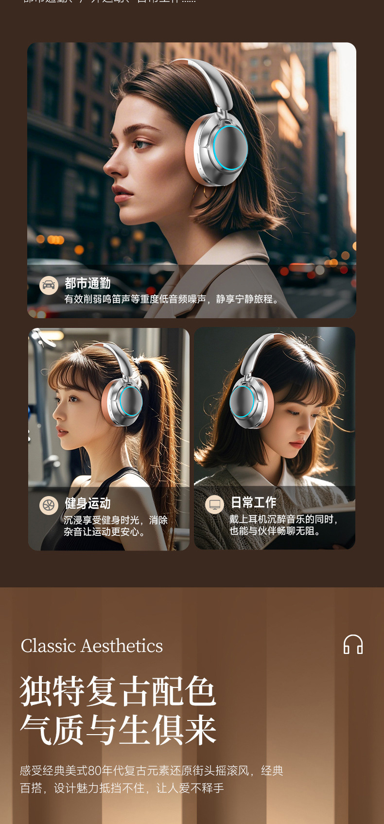 레트로 ANC 활성 소음 감소 헤드셋 무선 블루투스 헤드셋 헤드셋 헤비 베이스 제어 가능한 빛 핫 세일