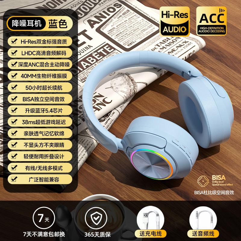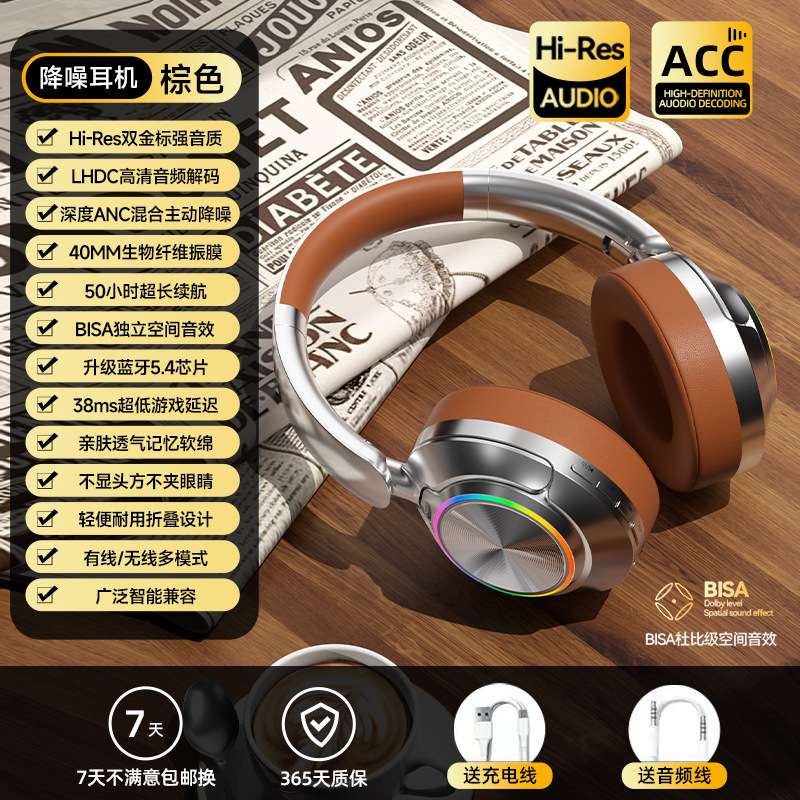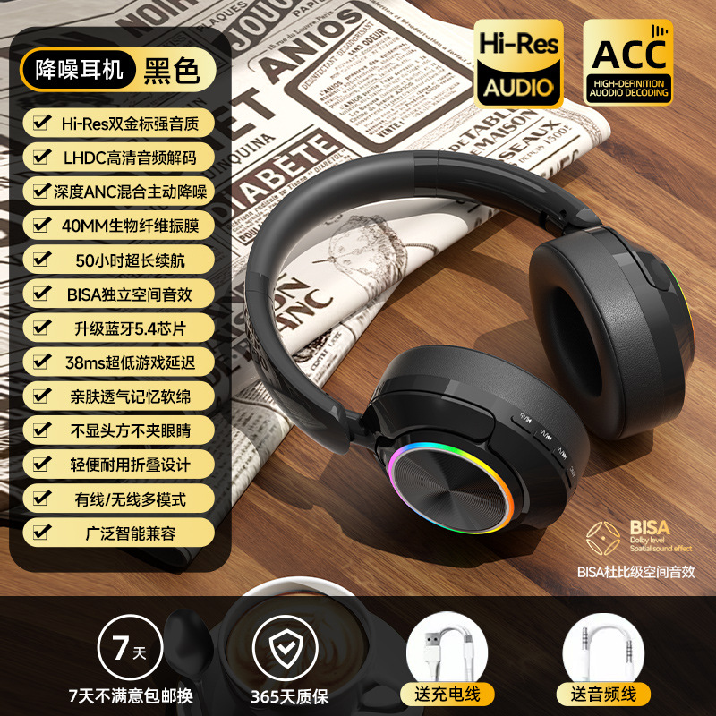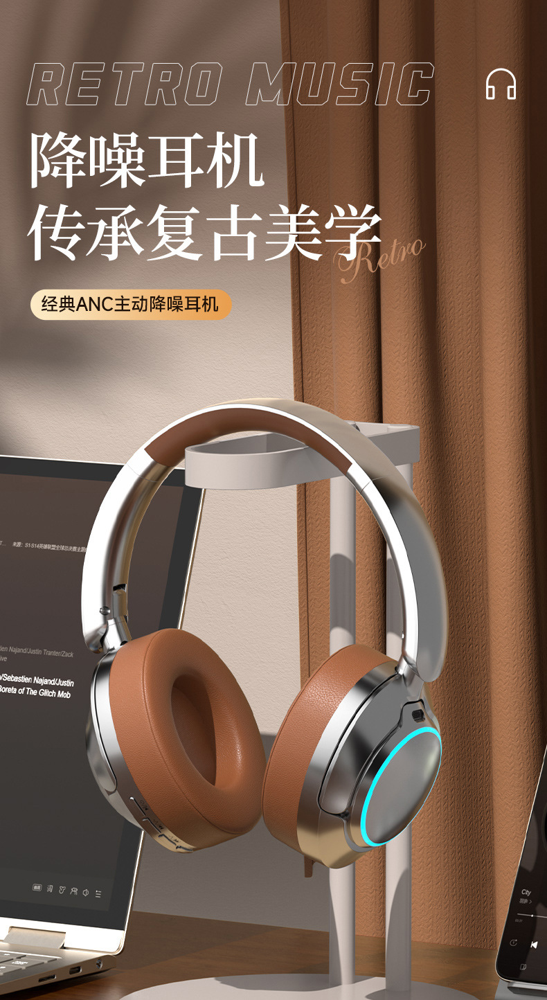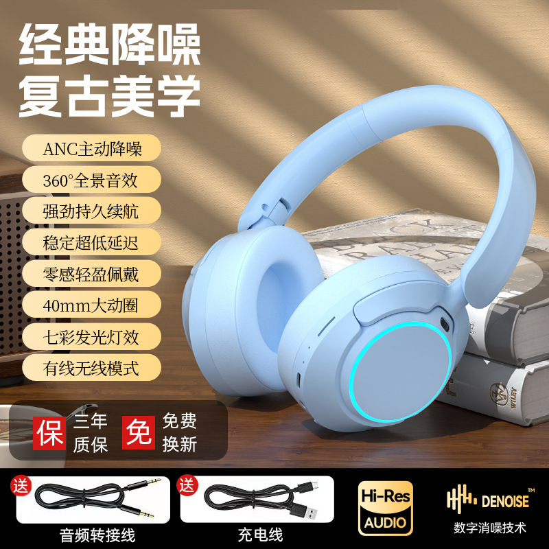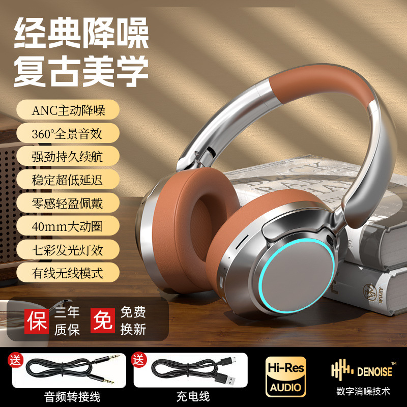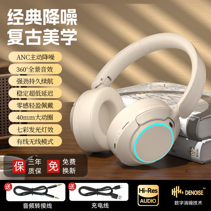 레트로 ANC 활성 소음 감소 헤드셋 무선 블루투스 헤드셋 헤드셋 헤비 베이스 제어 가능한 빛 핫 세일스토어 가기