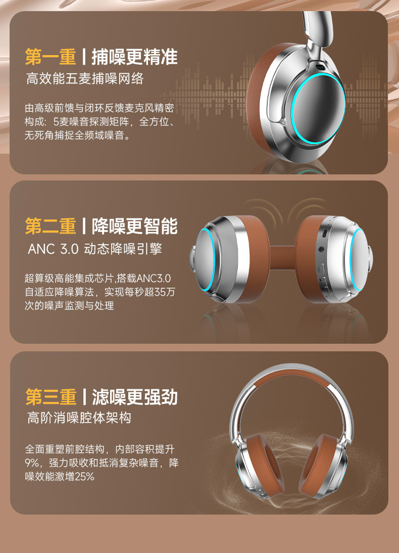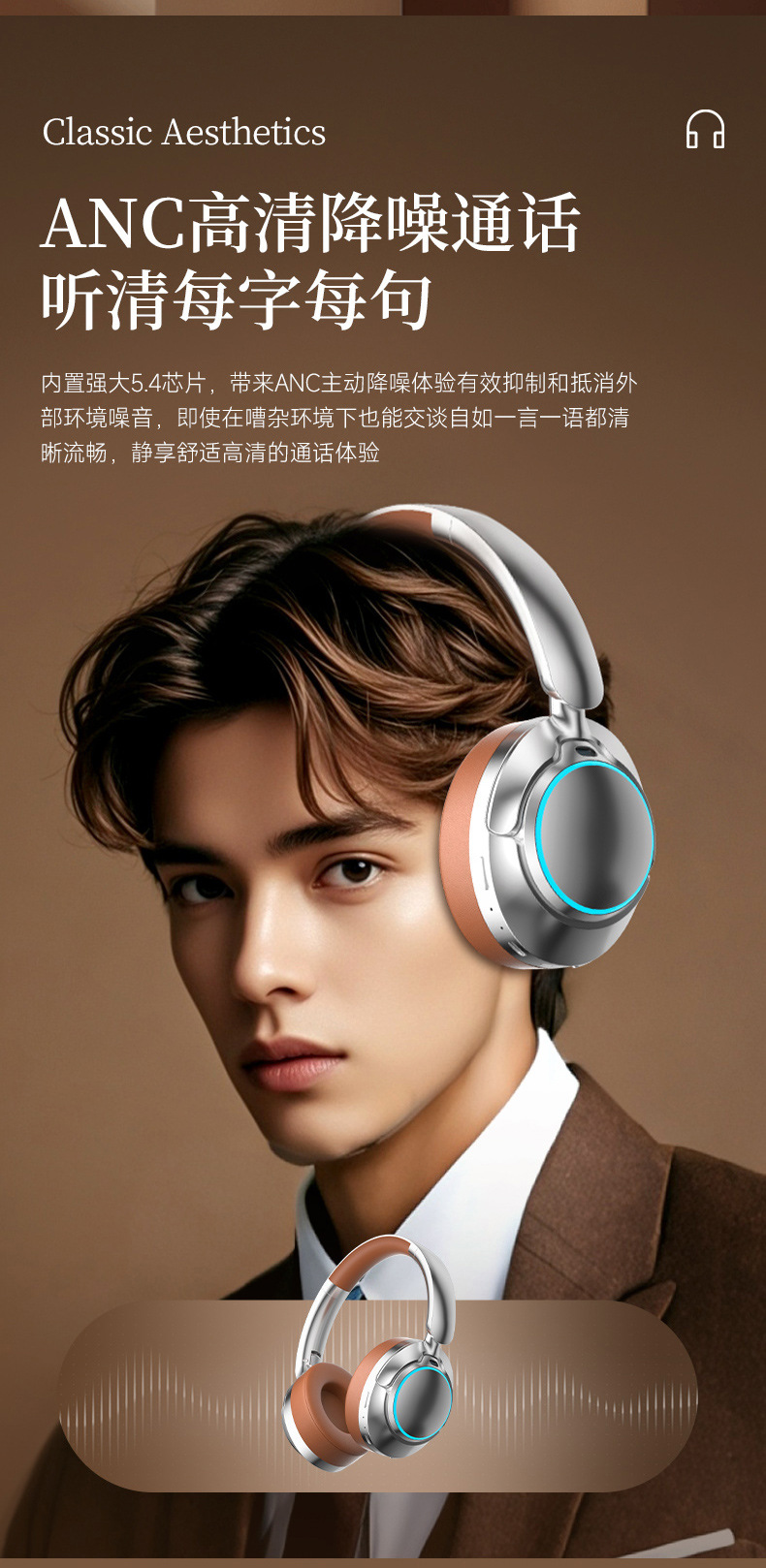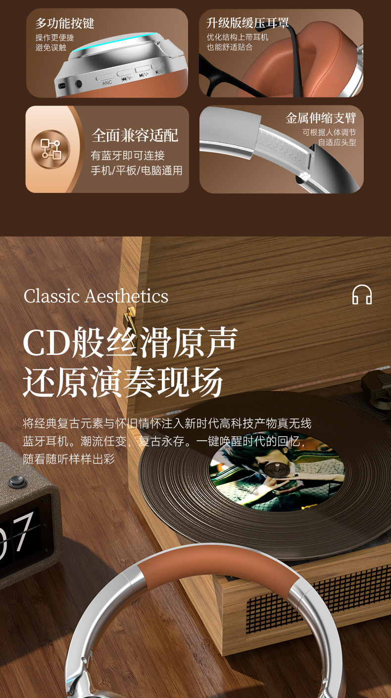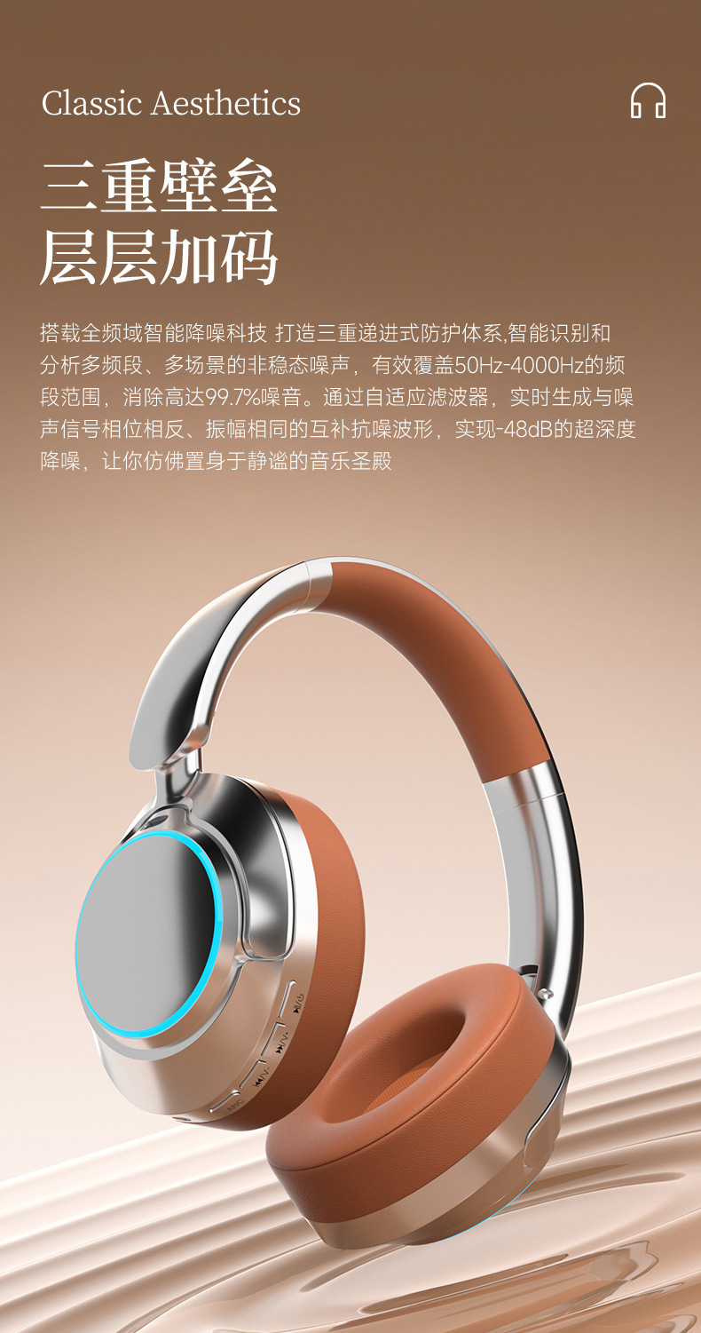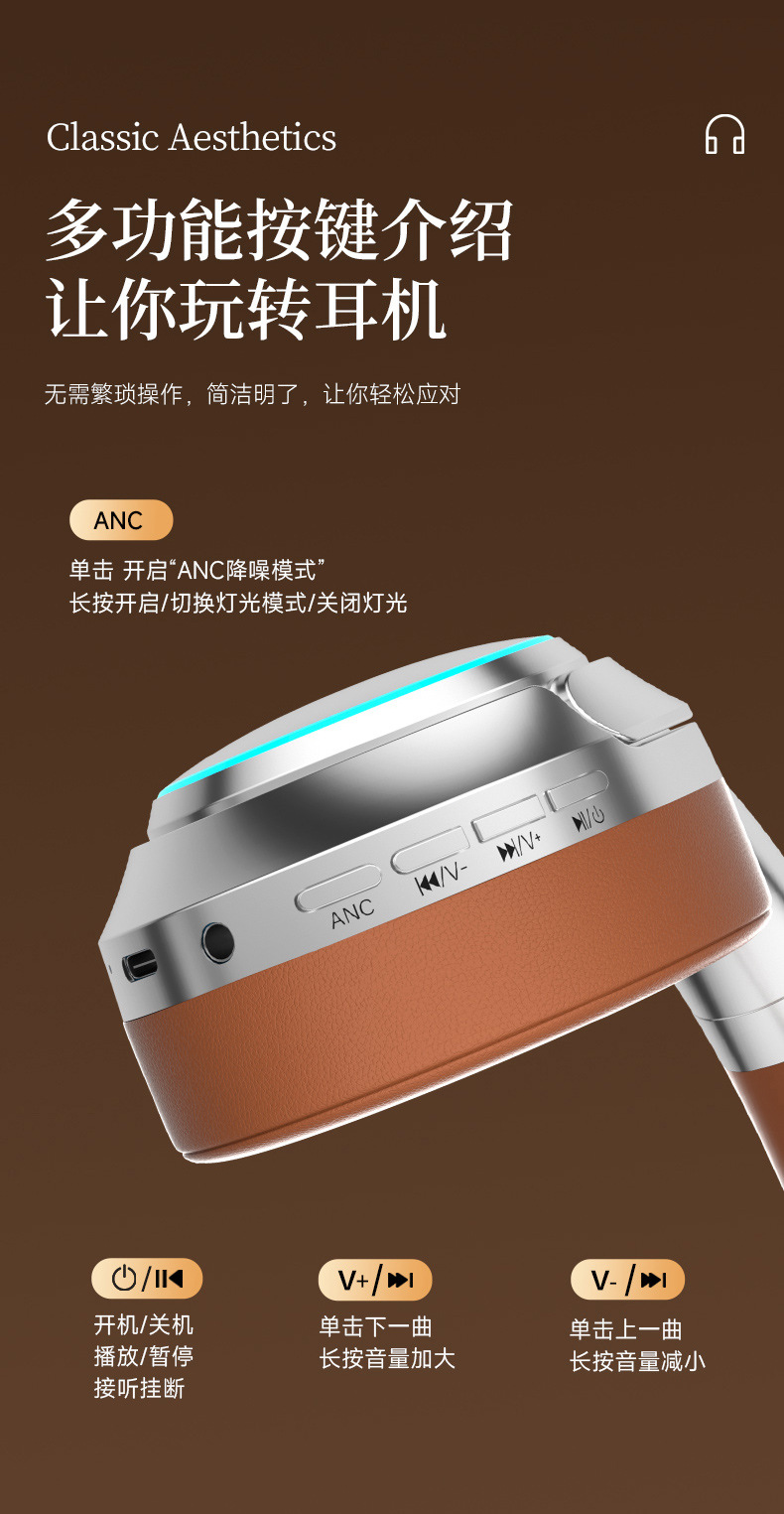 레트로 ANC 활성 소음 감소 헤드셋 무선 블루투스 헤드셋 헤드셋 헤비 베이스 제어 가능한 빛 핫 세일스토어 가기