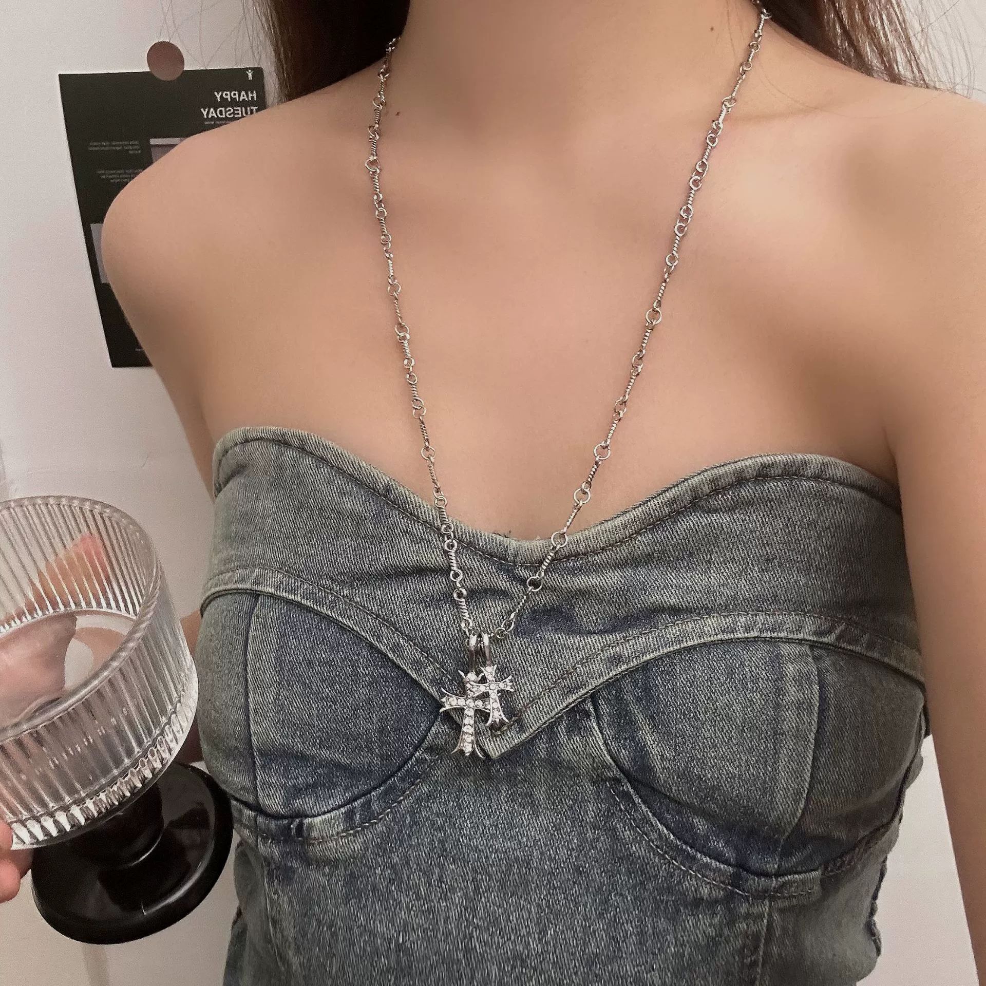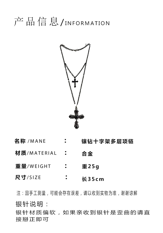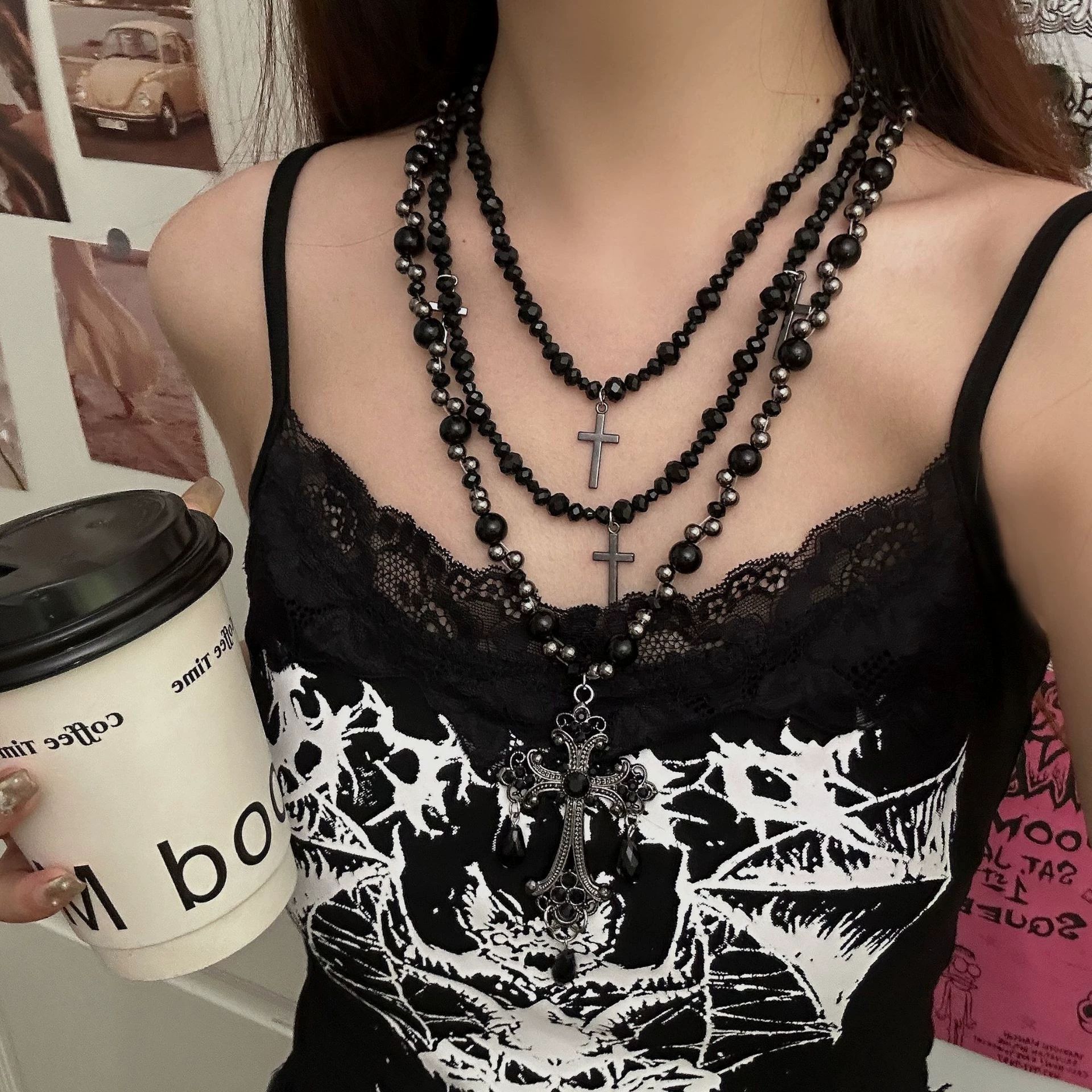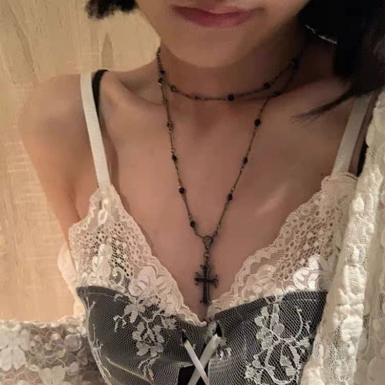 다크 콜드 스타일 고딕 스타일 블랙 로즈 구슬 크로스 긴 목걸이 틈새 빛 럭셔리 스파이스 소녀 모직 체인스토어 가기