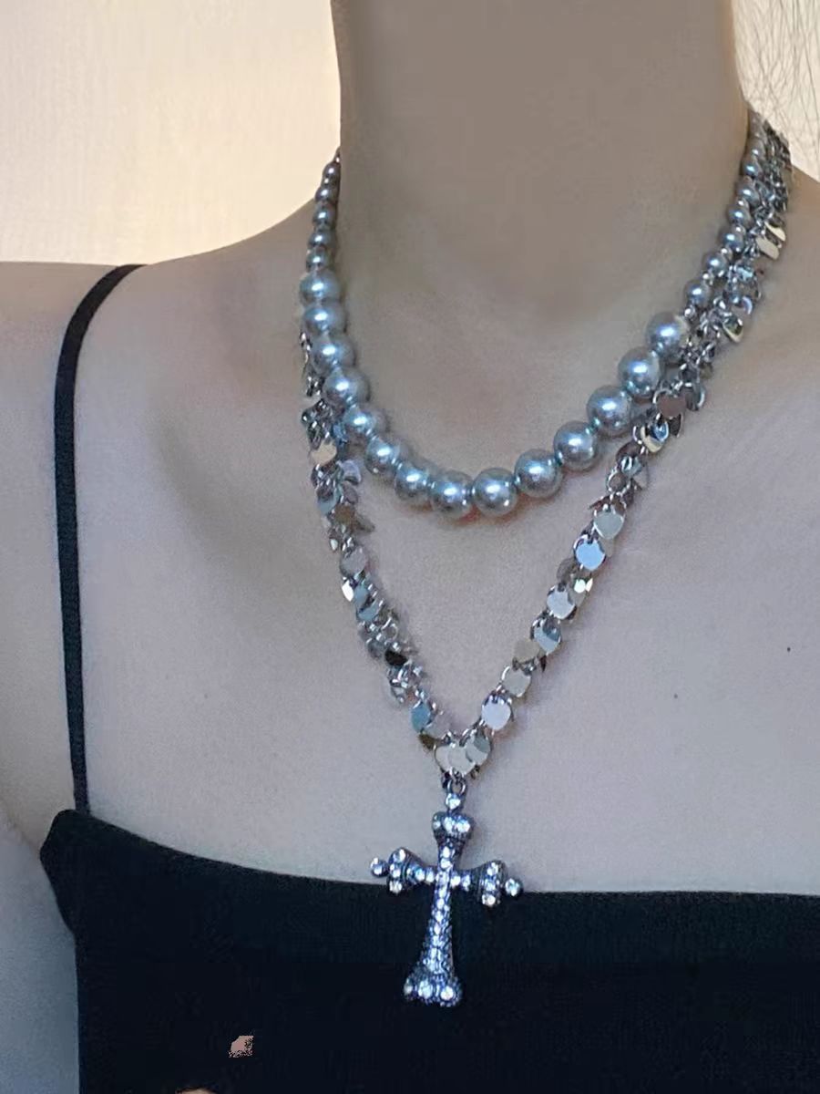• 크로스 더블 레이어 스팽글 목걸이 X4242