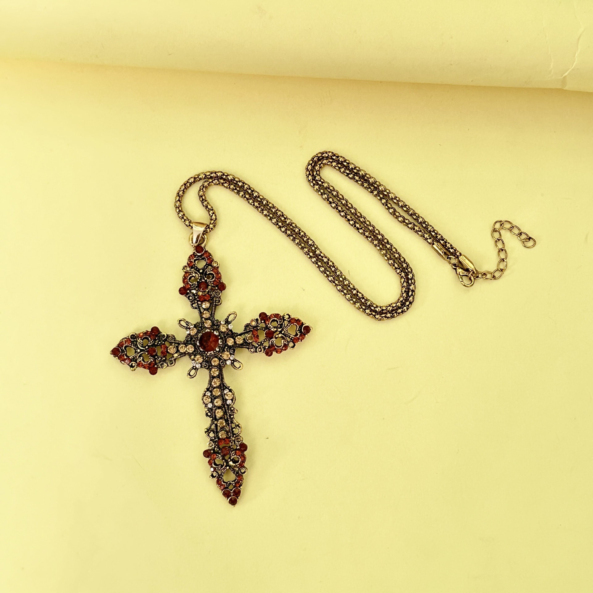 • 골드 라인스톤 크로스 롱 목걸이 X4580