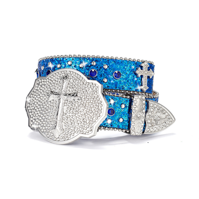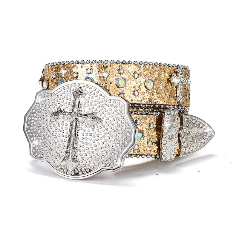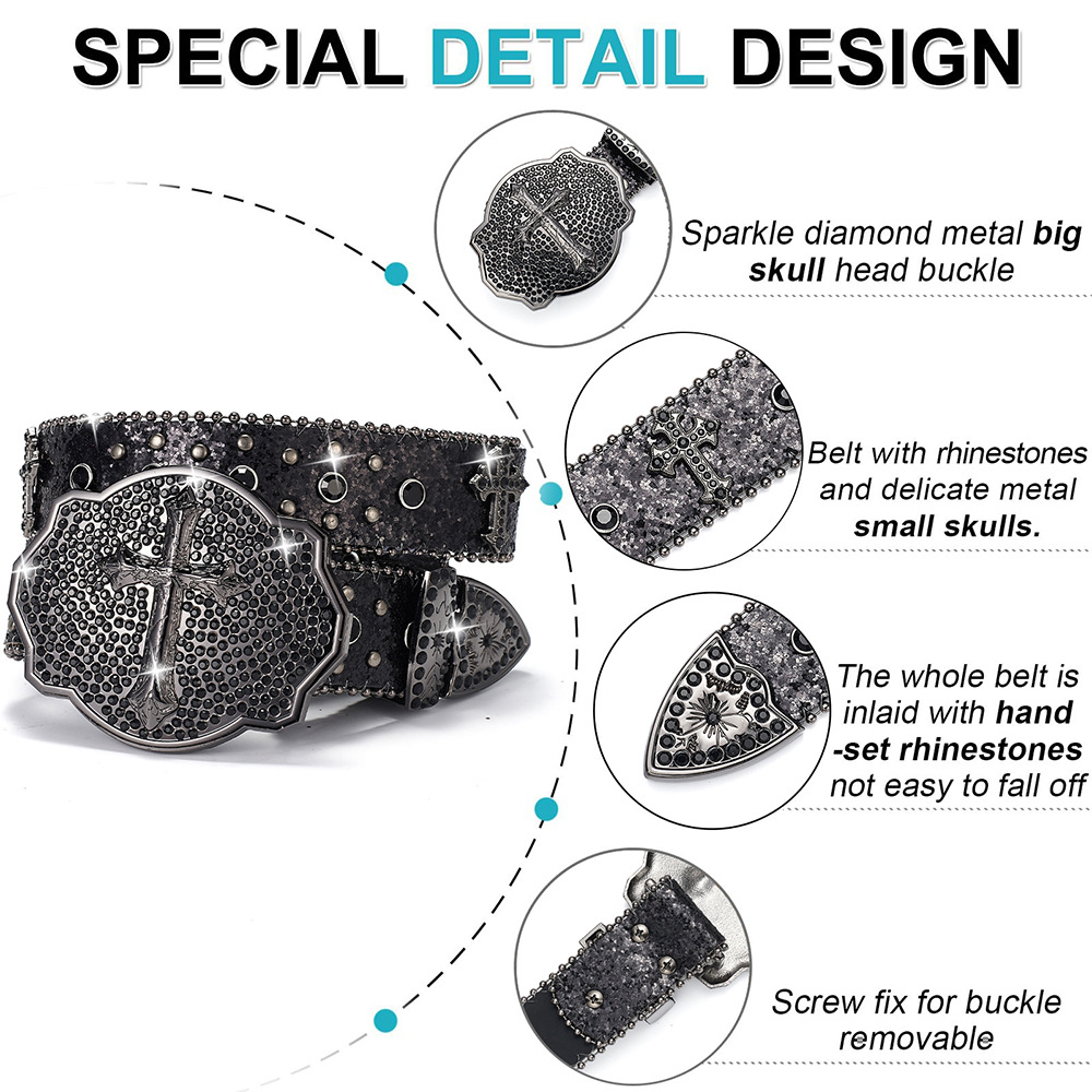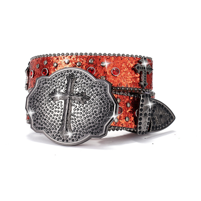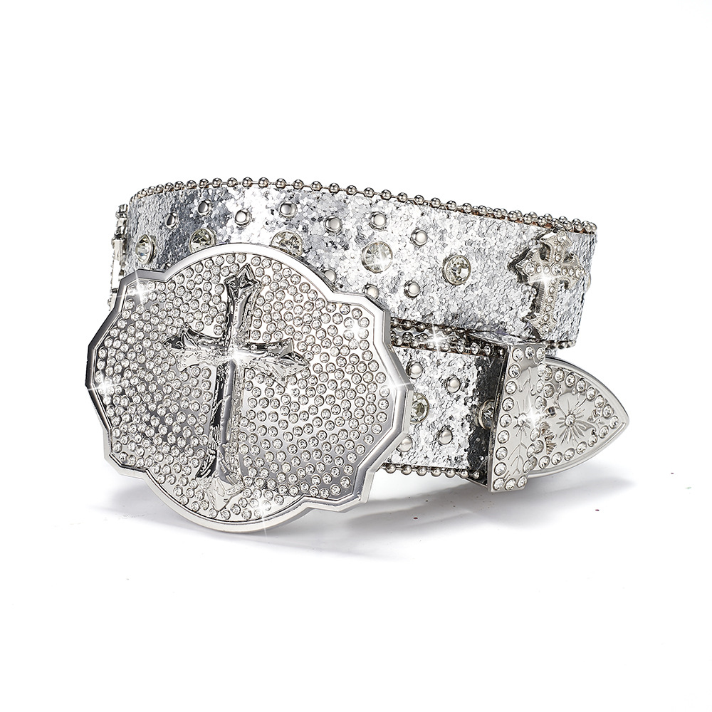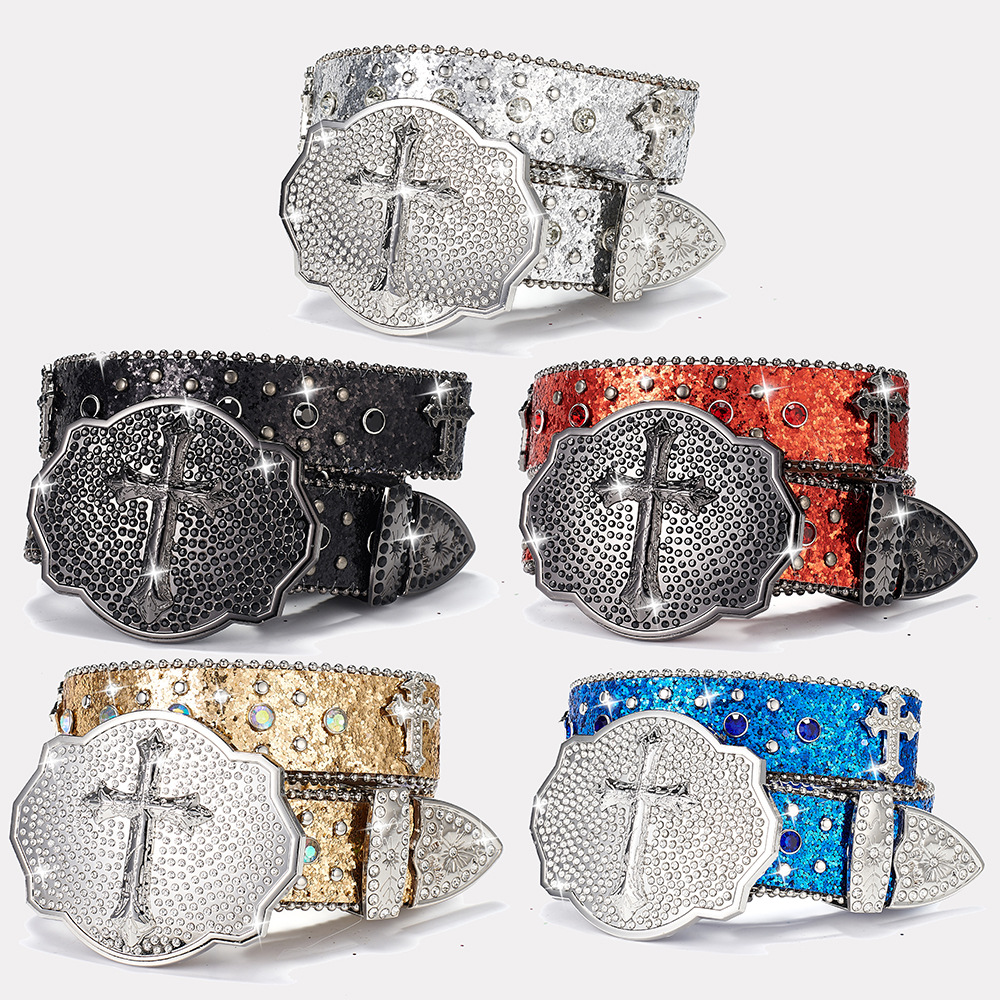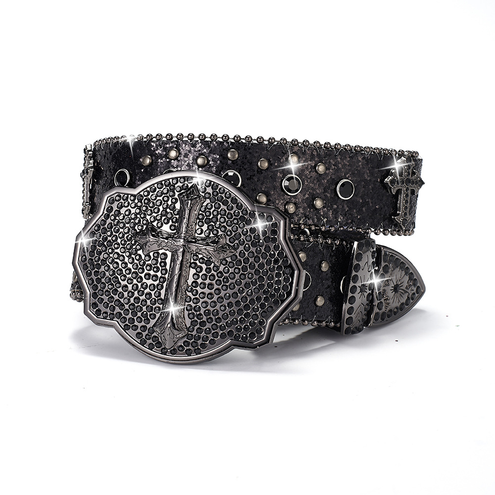 크로스 보더 펑크 벨트 크로스 쉴드 인레이드 라인스톤 속편 록 패션 벨트 남성 여성 벨트스토어 가기
