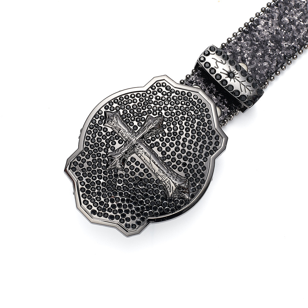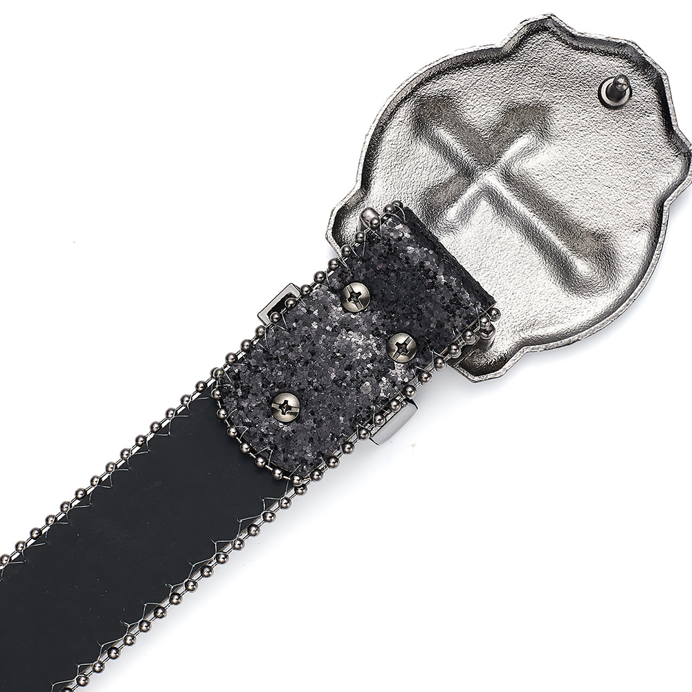 크로스 보더 펑크 벨트 크로스 쉴드 인레이드 라인스톤 속편 록 패션 벨트 남성 여성 벨트