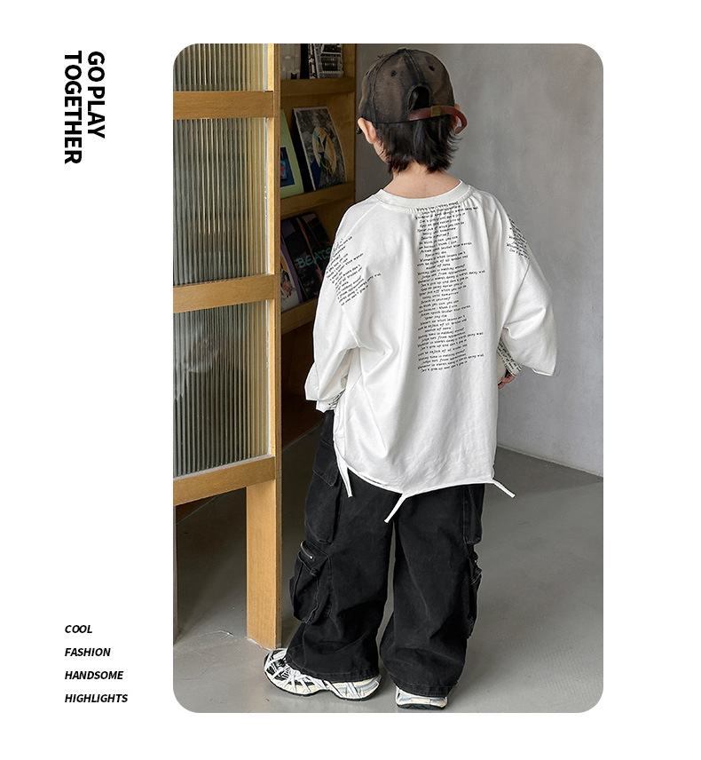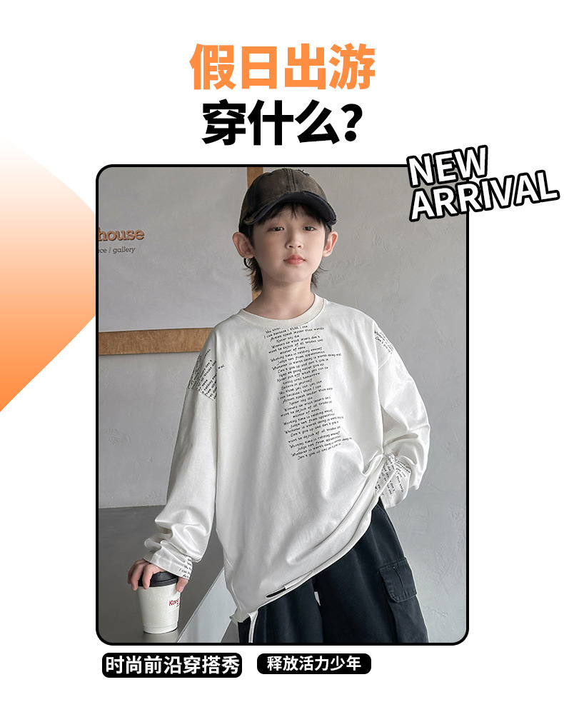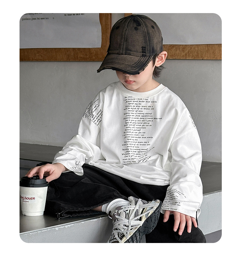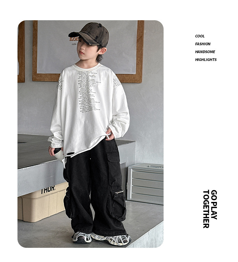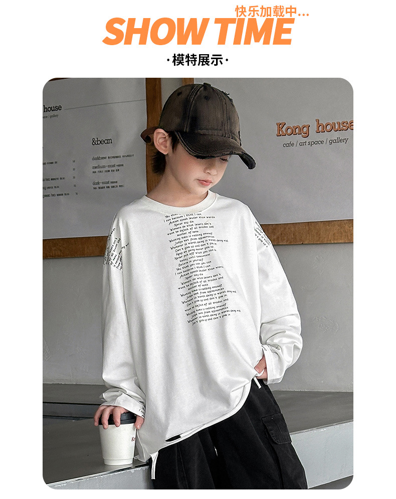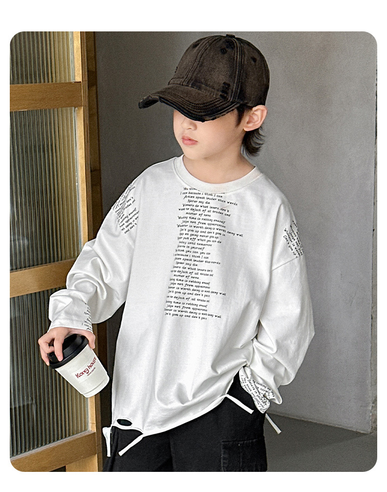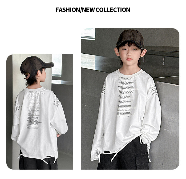 소년 찢어진 티셔츠 긴팔 봄, 가을 2025 새로운 아동 의류 아동상의 중대형 아동 가을 바닥 셔츠 도매스토어 가기
