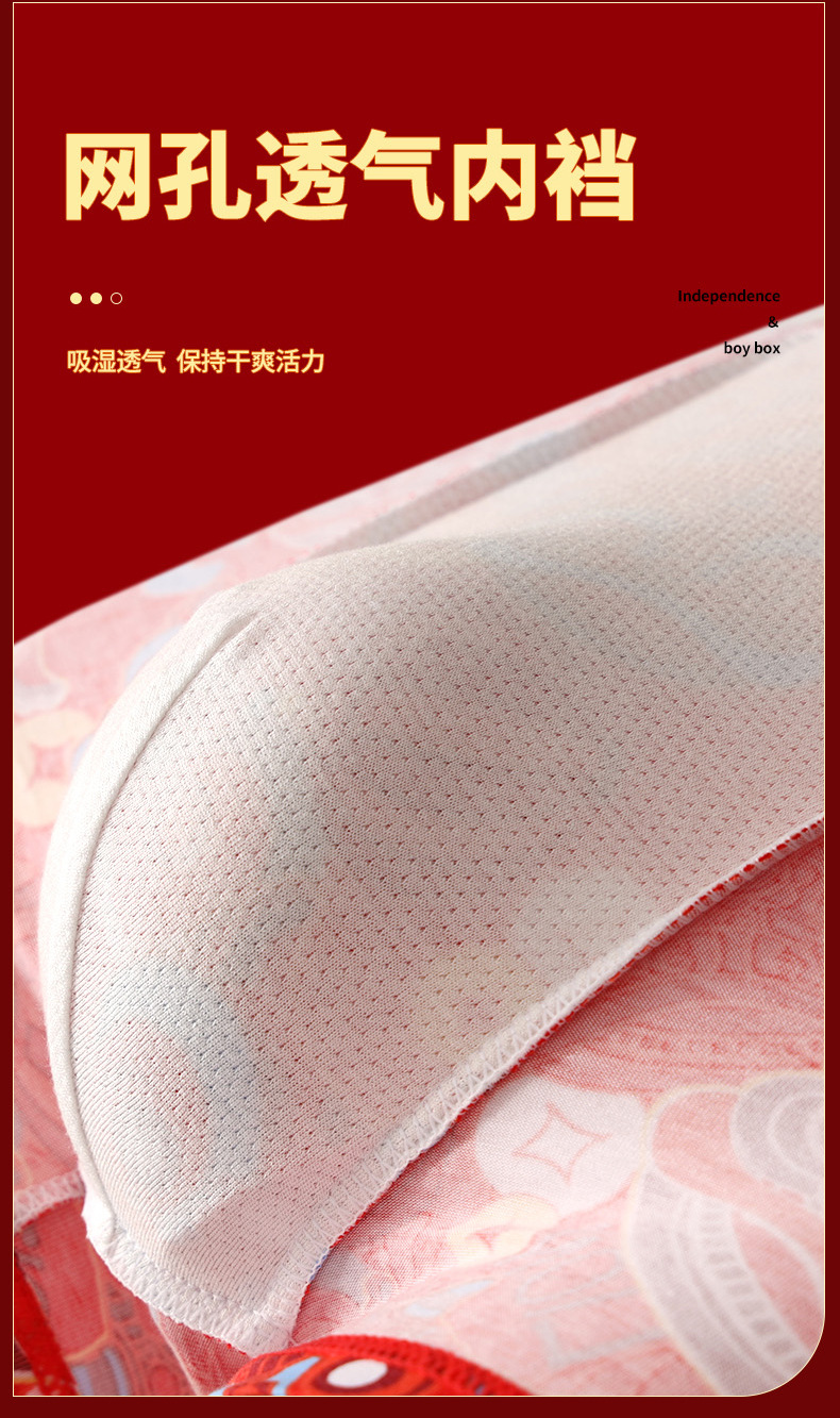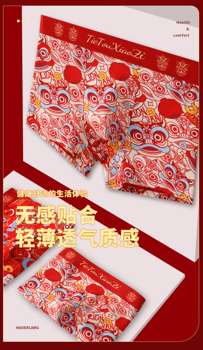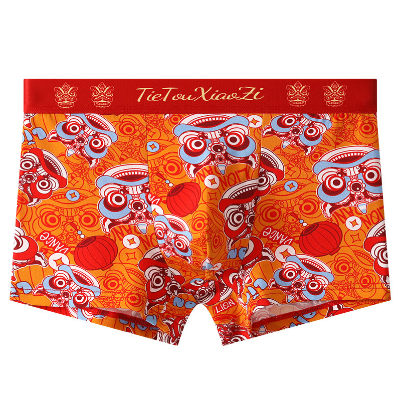 남성 속옷 벤밍 니안 레드 박스 레드 웨딩 인쇄 중간 허리 독특한 중국 스타일 바지 복서스토어 가기