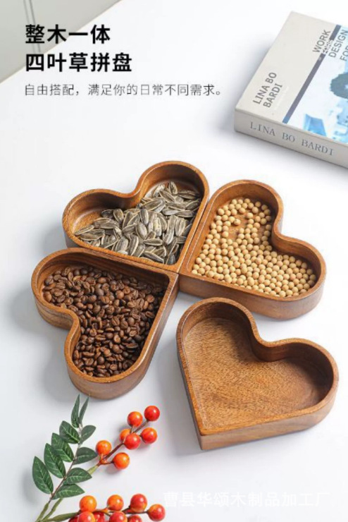 나무 사랑 트레이 웨딩 사탕 트레이 거실 말린 과일 스낵 플레이트 웨딩 연회 접시 빵 케이크 디너 플레이트스토어 가기