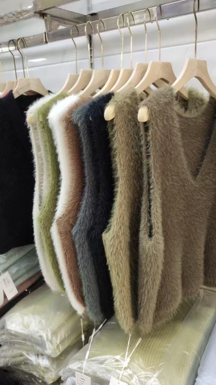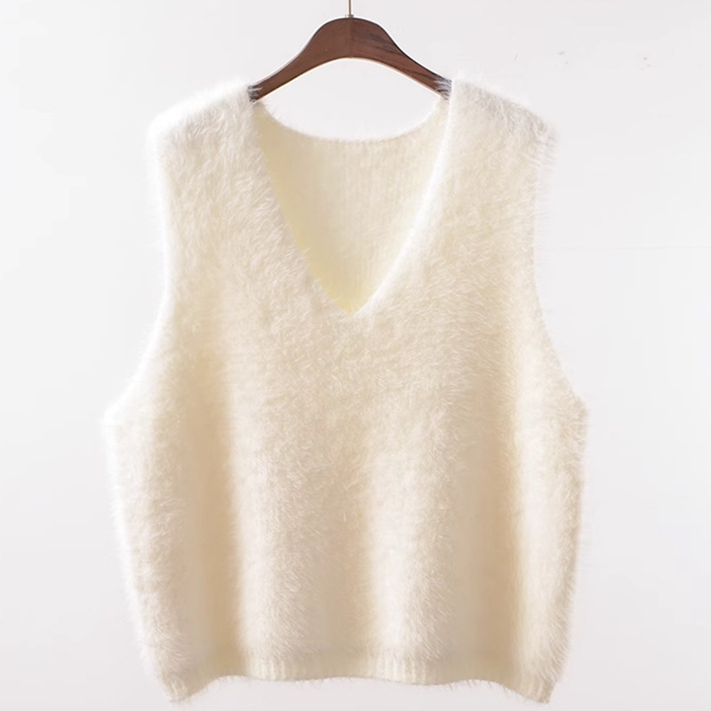 솔리드 컬러 풀오버 스웨터 조끼 여성용 패셔너블 프린트 프랑스 유럽식 V 넥 모방 밍크 벨벳 니트 조끼스토어 가기