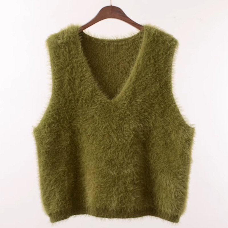 솔리드 컬러 풀오버 스웨터 조끼 여성용 패셔너블 프린트 프랑스 유럽식 V 넥 모방 밍크 벨벳 니트 조끼