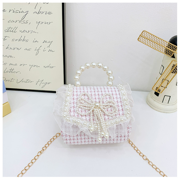 유치원 소녀 진주 크로스 바디 백 올해 인기있는 Houndstooth 코인 지갑 활 레이스 작은 광장 가방