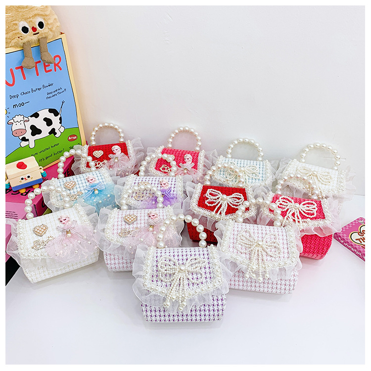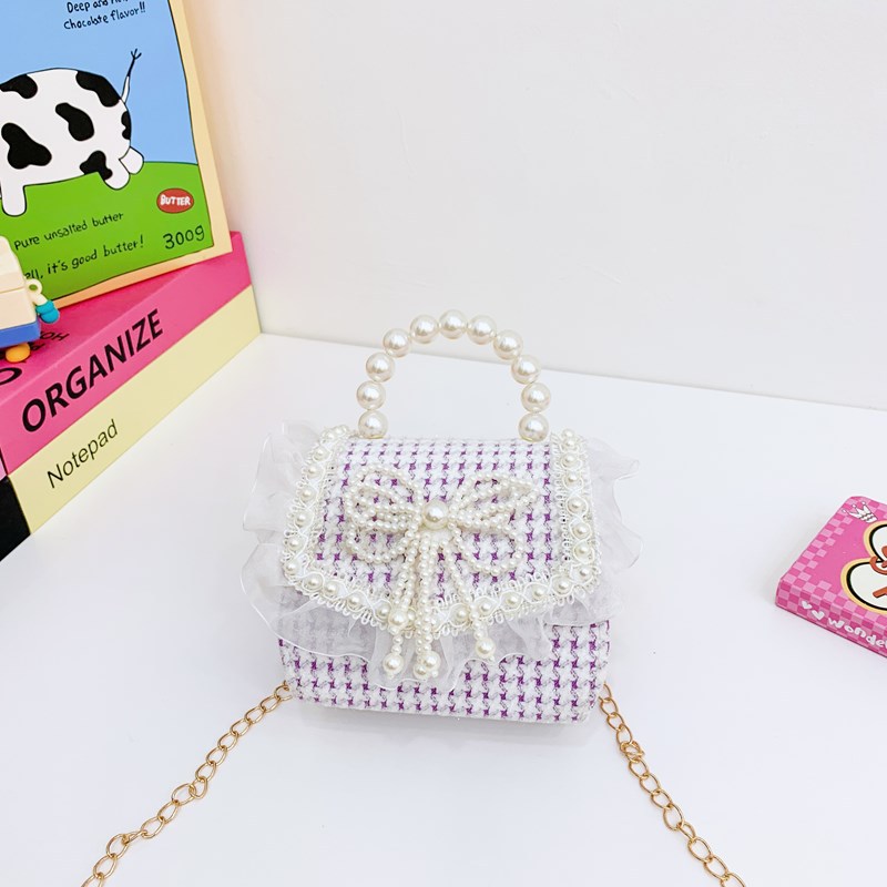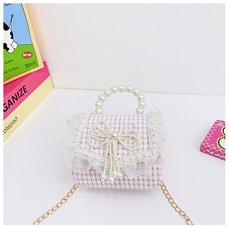 유치원 소녀 진주 크로스 바디 백 올해 인기있는 Houndstooth 코인 지갑 활 레이스 작은 광장 가방스토어 가기