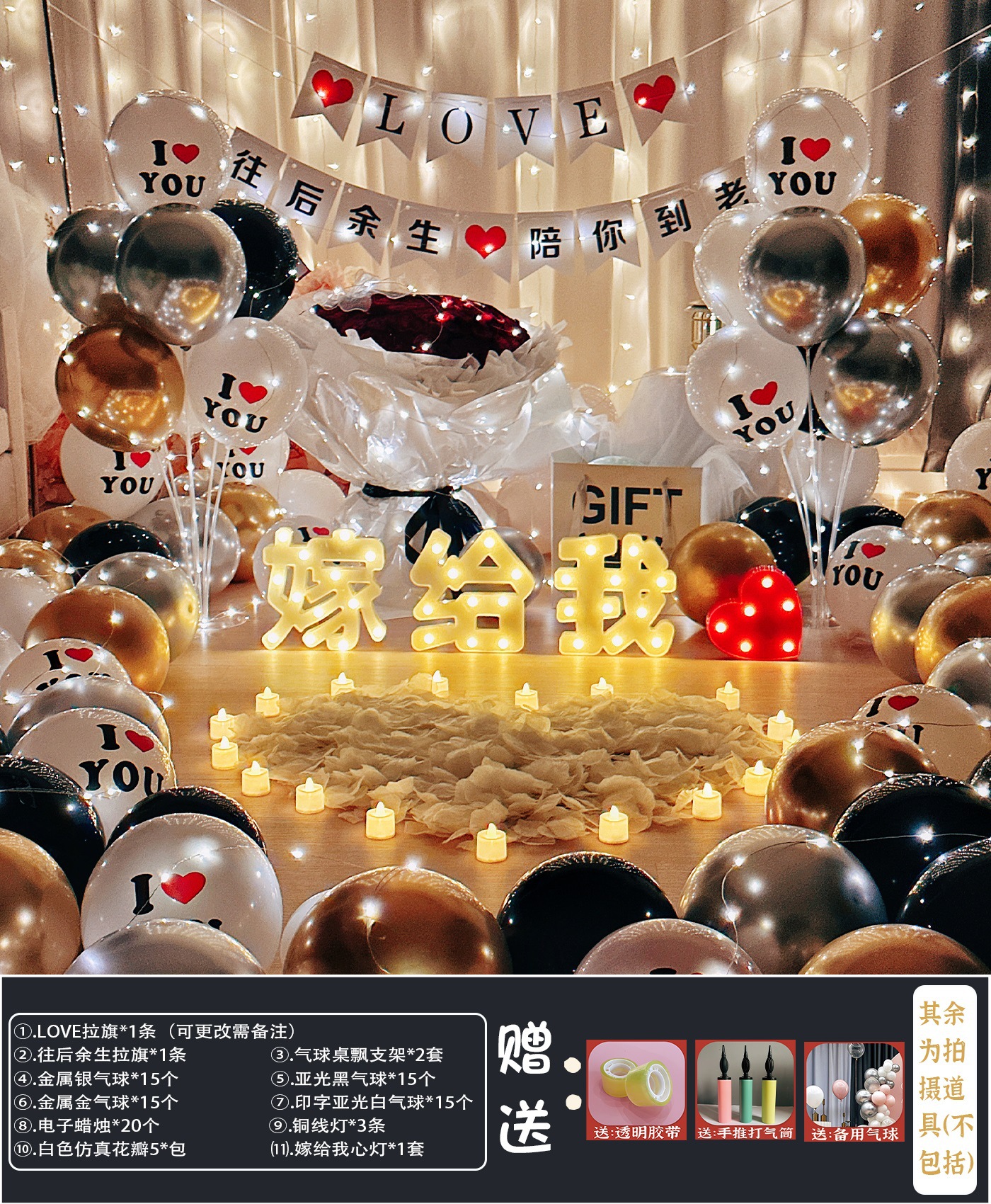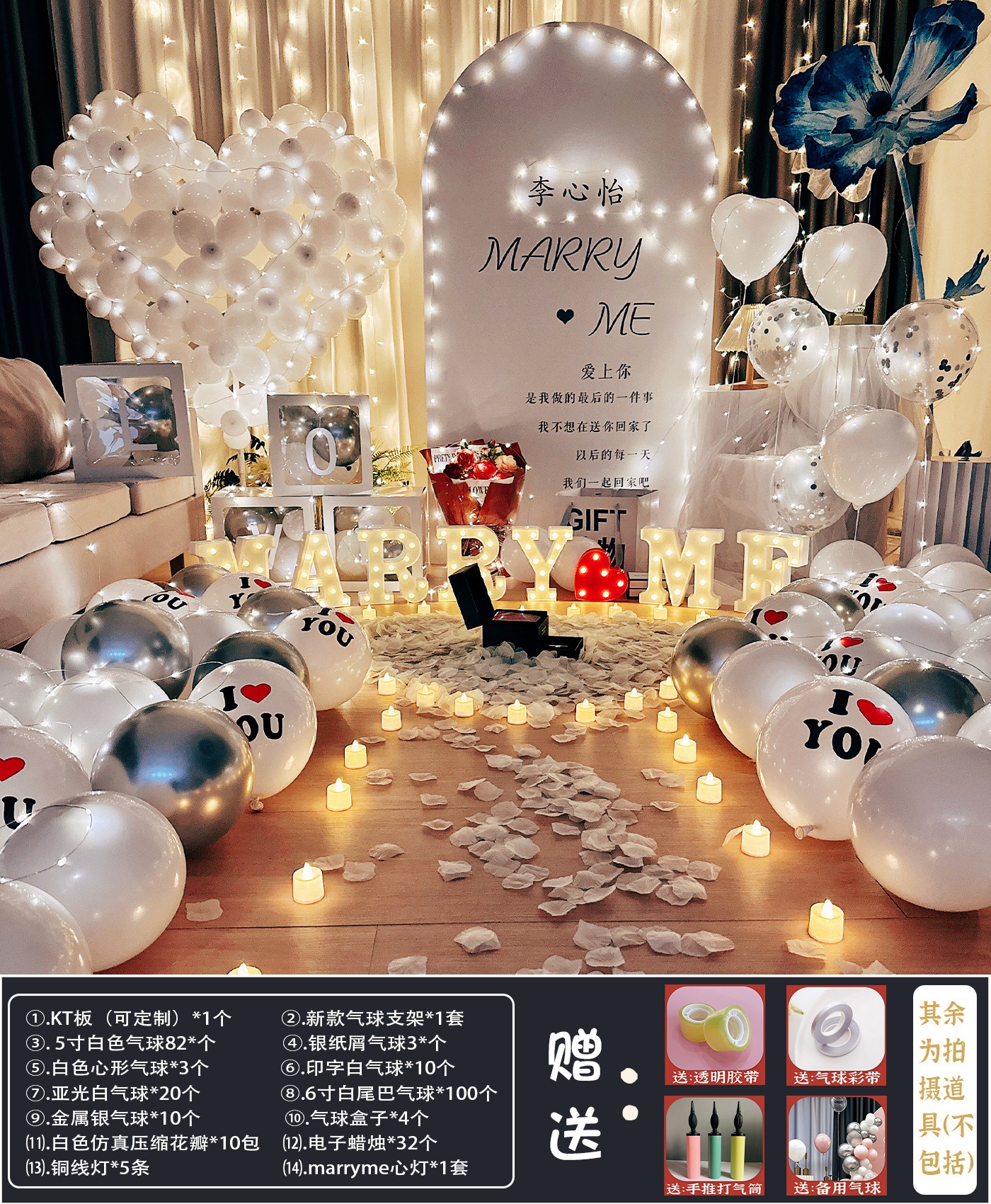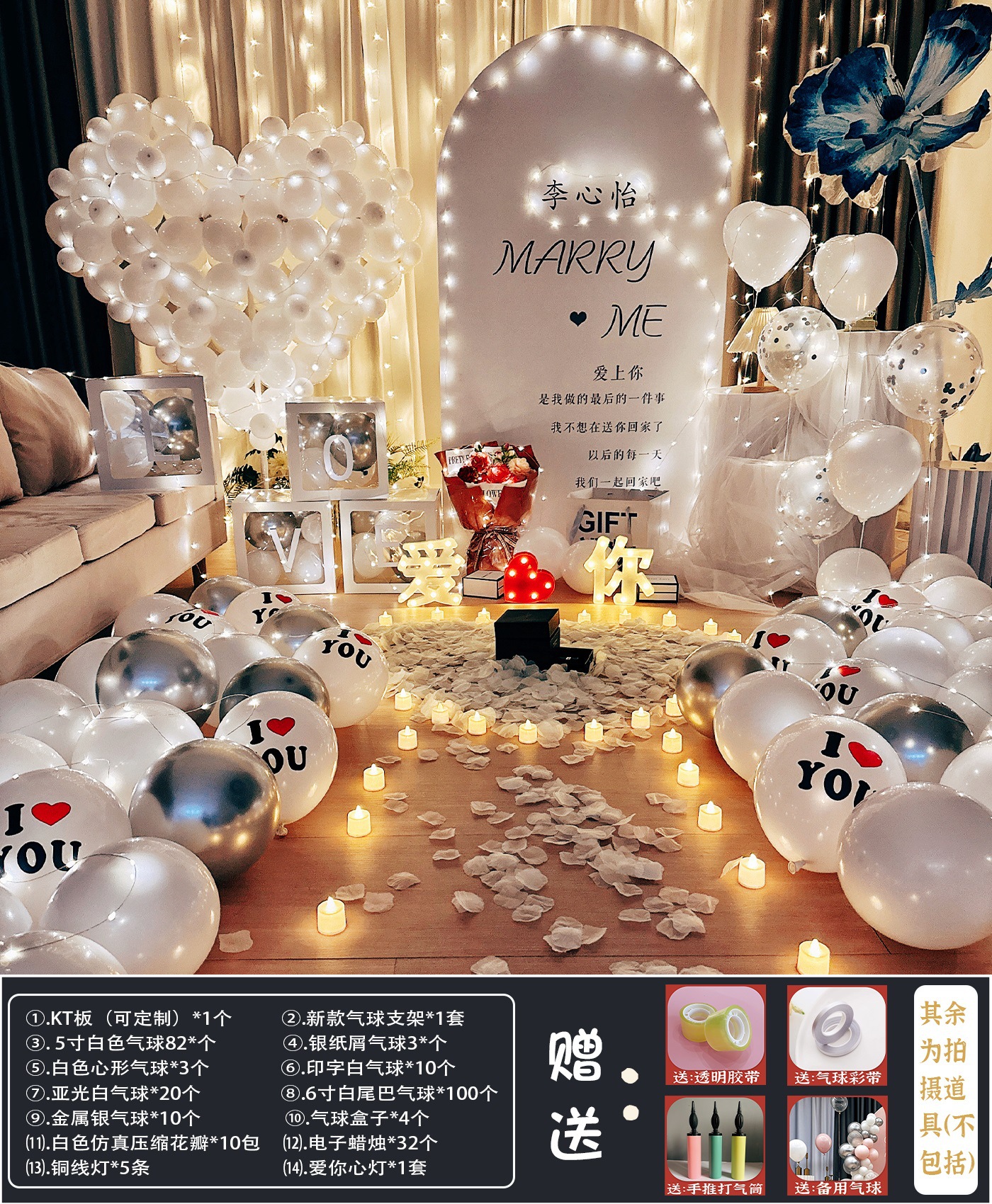 기념일 서프라이즈 낭만적 인 장면 장식 Tanabata 발표 LED 제안 풍선 배경 벽 배치스토어 가기