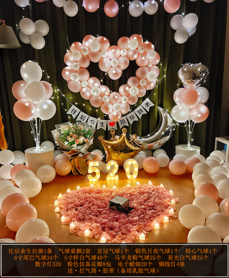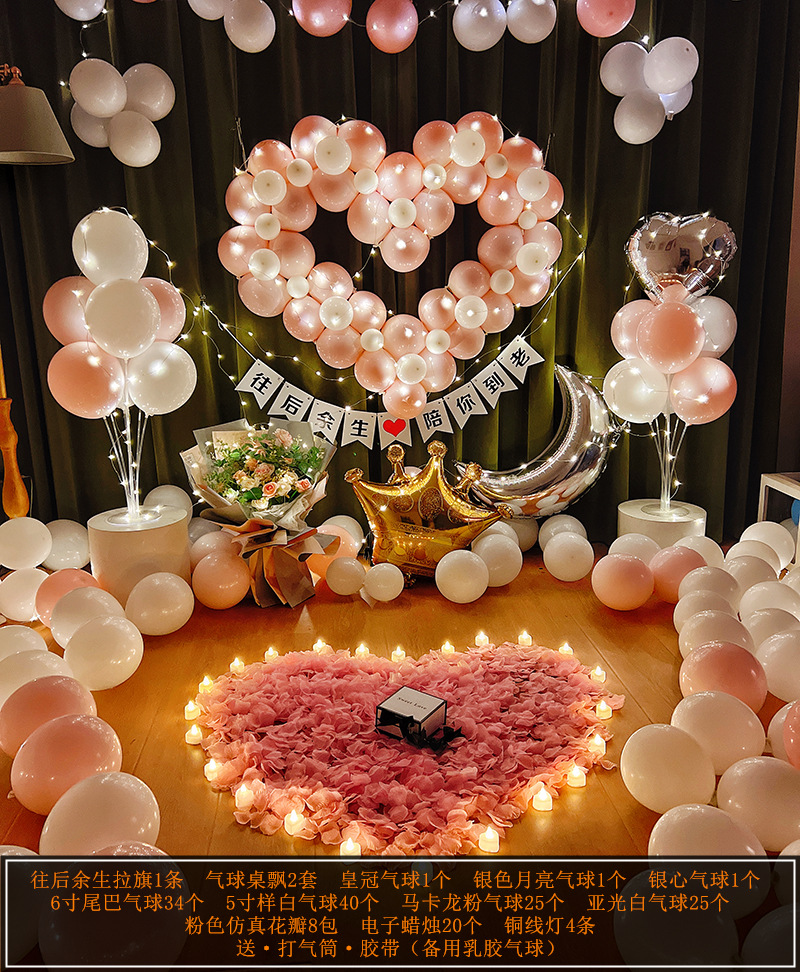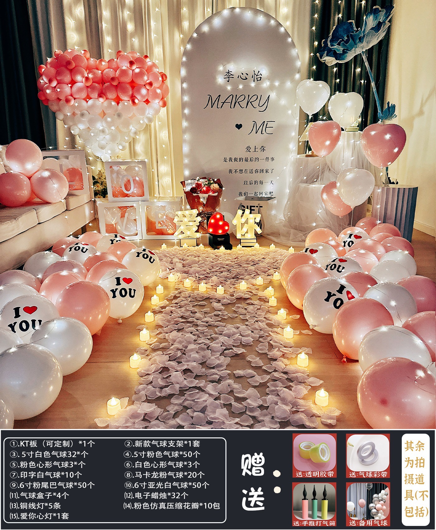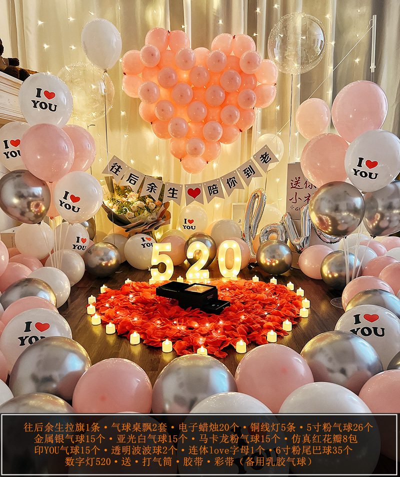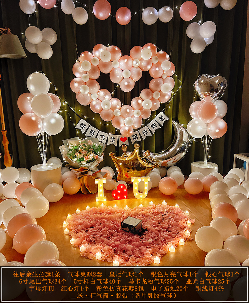 기념일 서프라이즈 낭만적 인 장면 장식 Tanabata 발표 LED 제안 풍선 배경 벽 배치