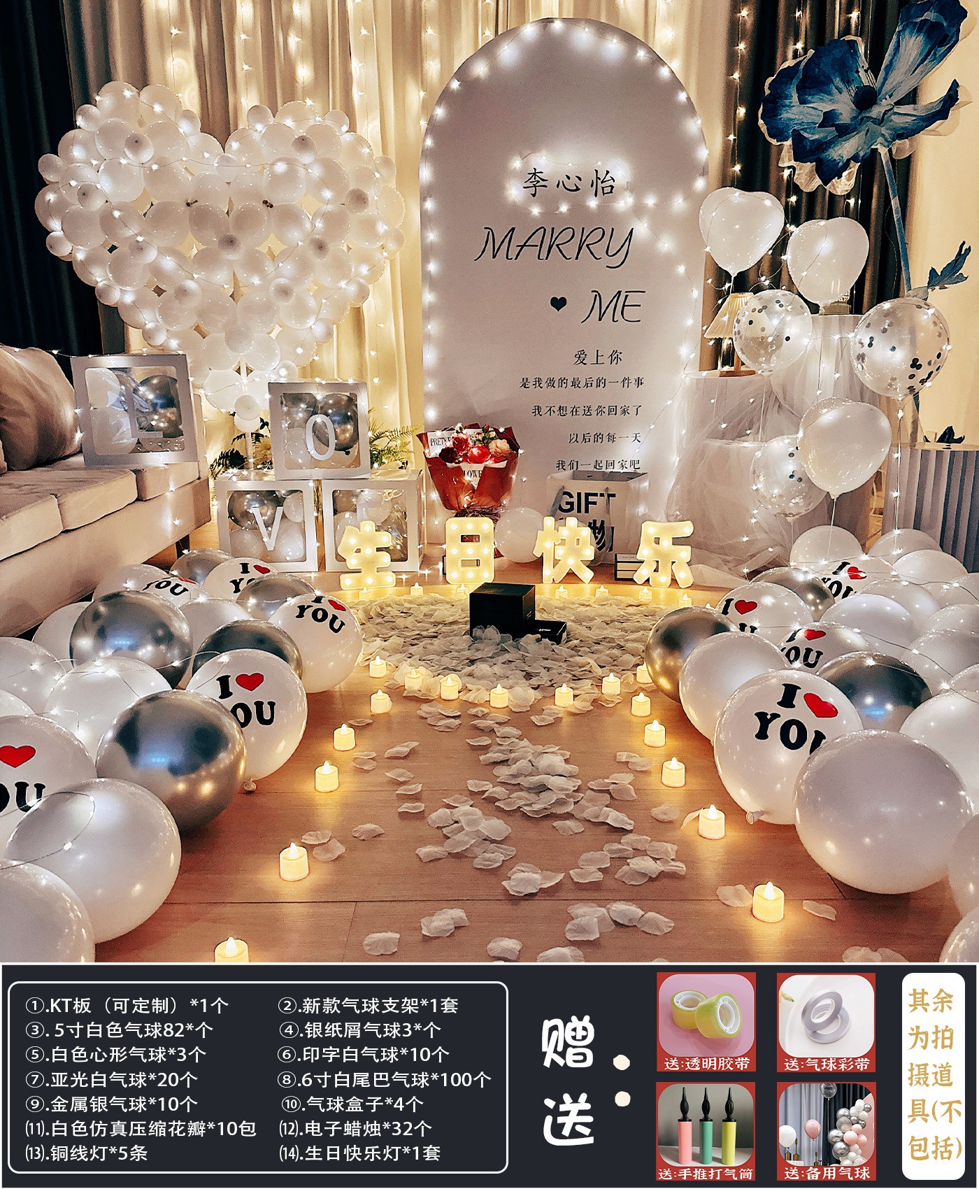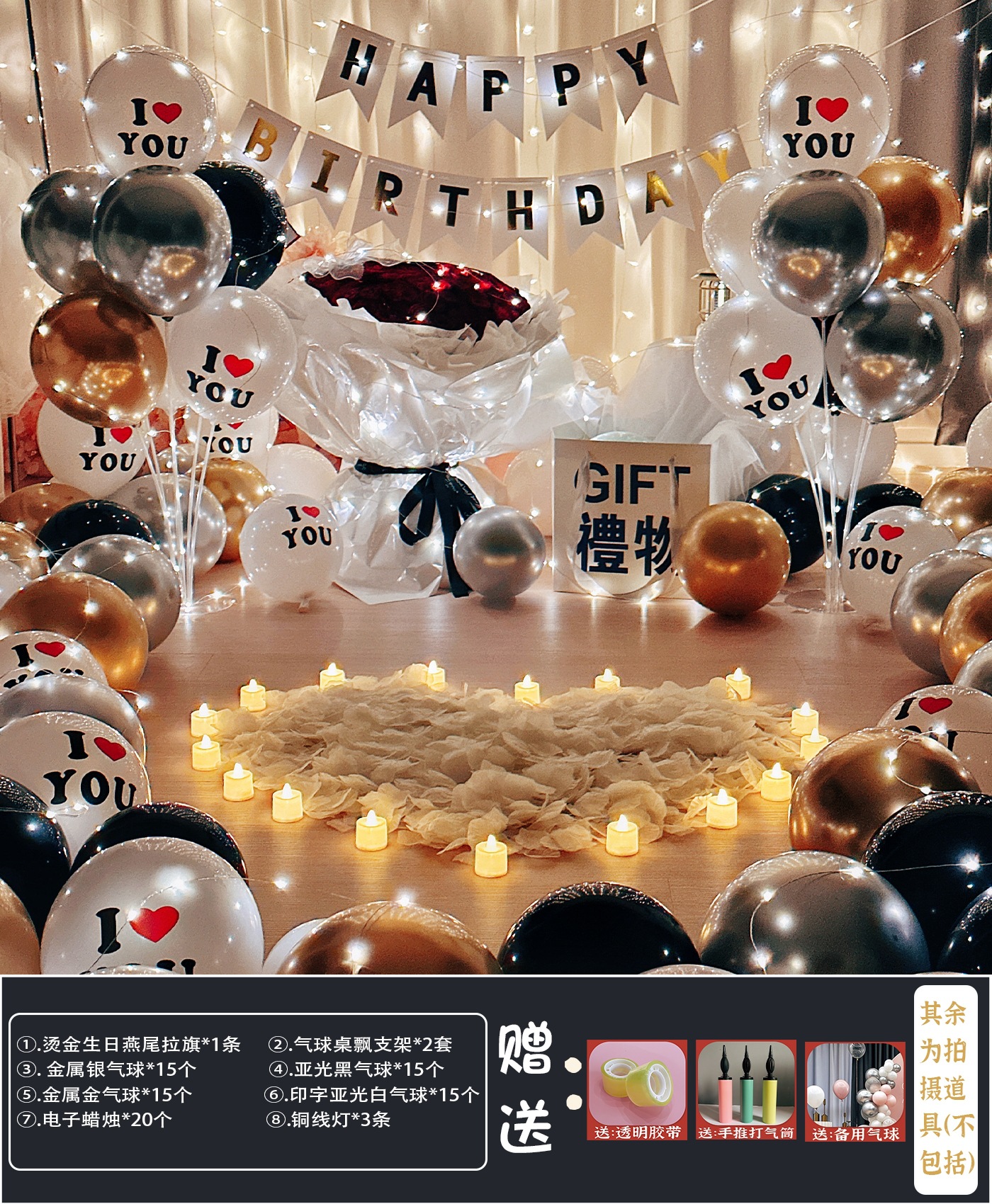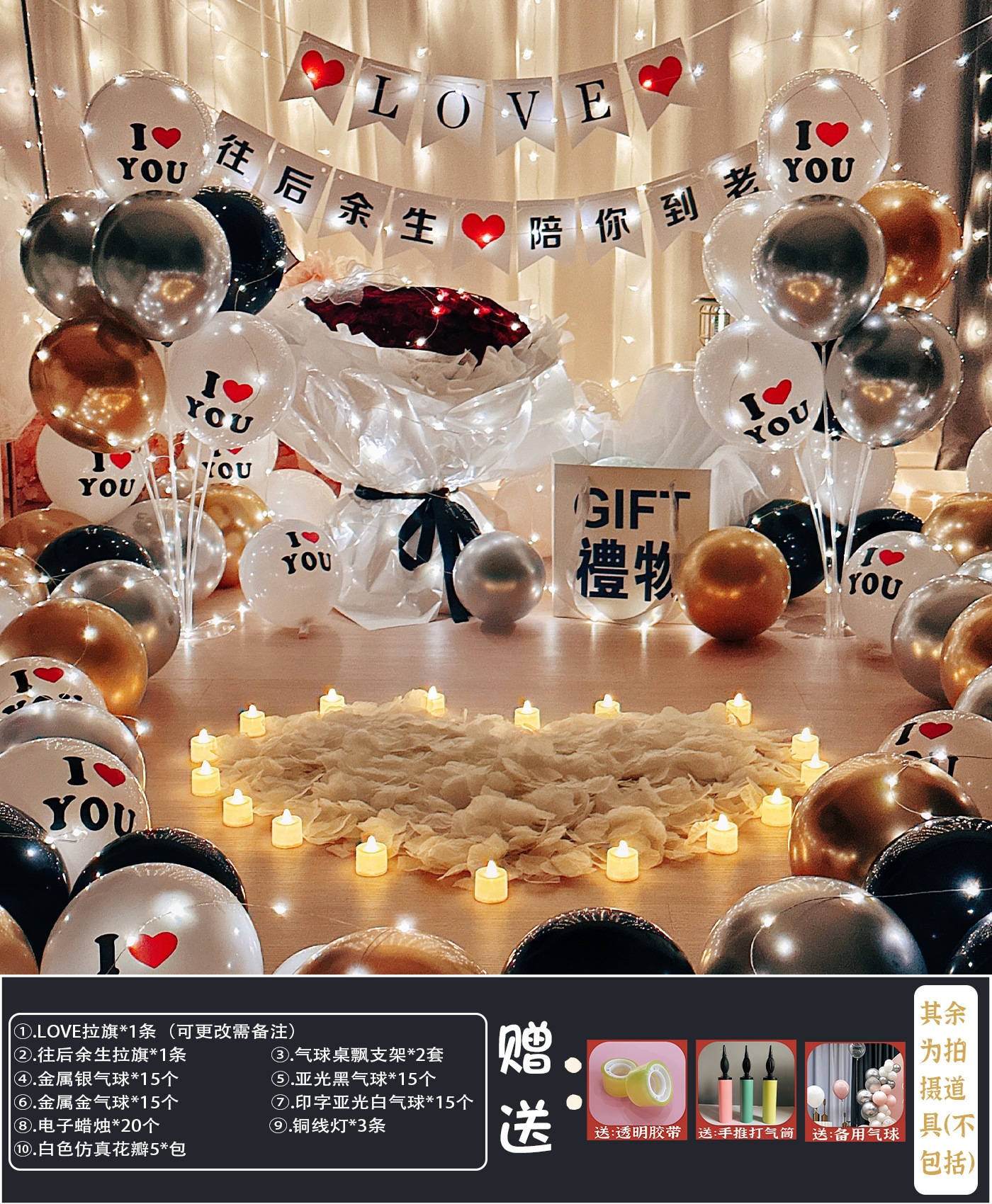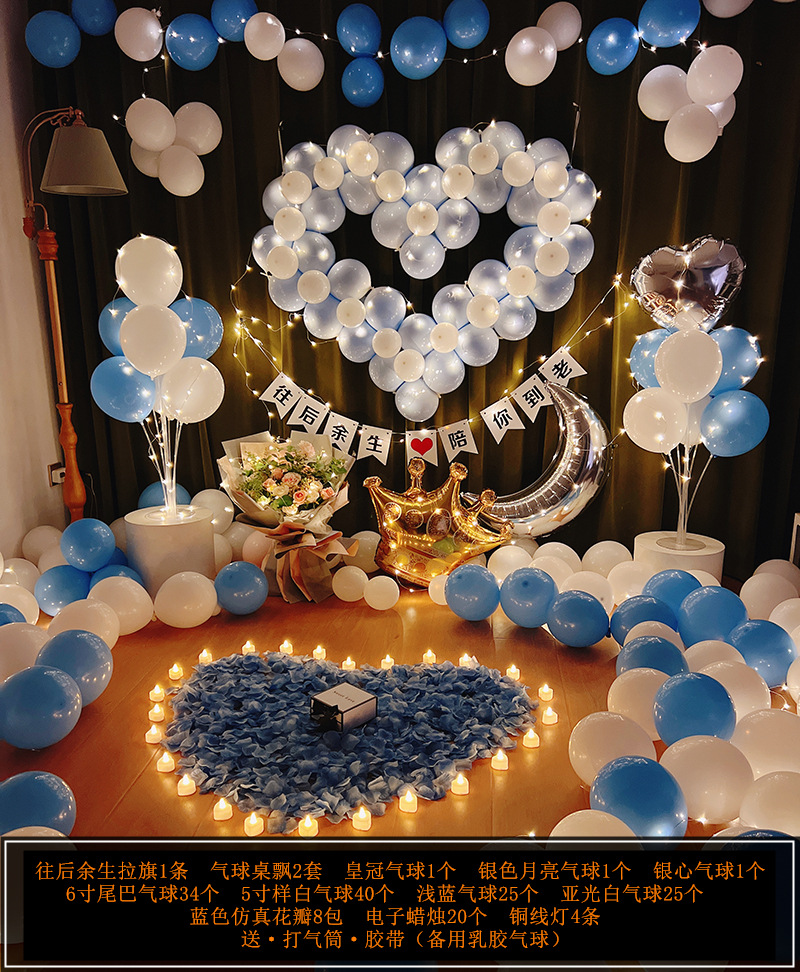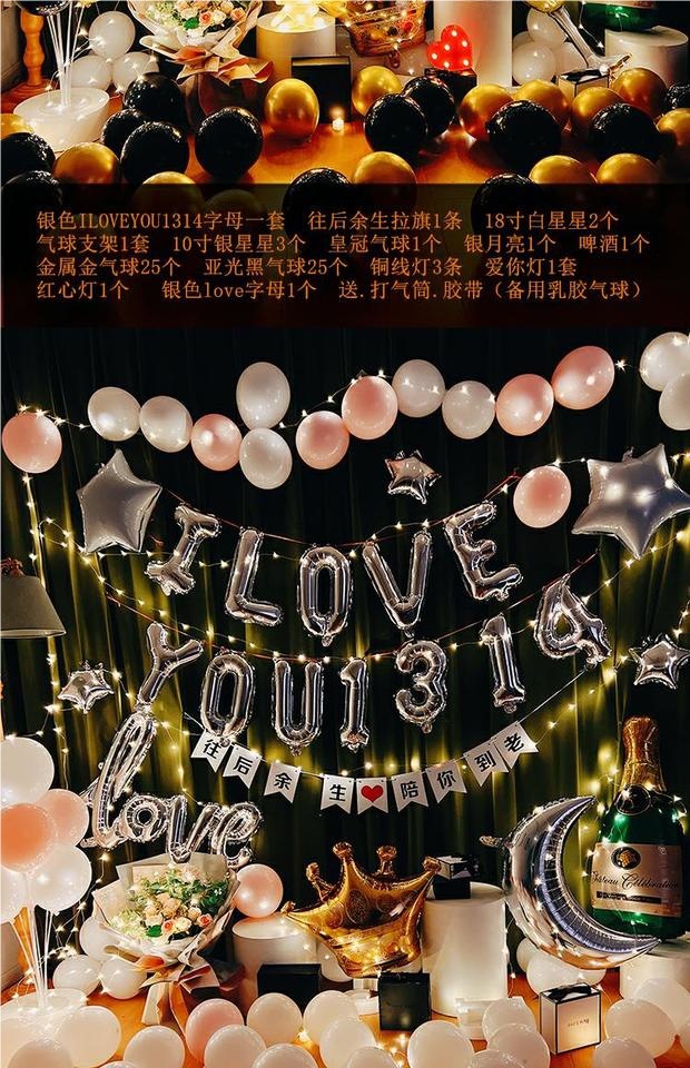 기념일 서프라이즈 낭만적 인 장면 장식 Tanabata 발표 LED 제안 풍선 배경 벽 배치
