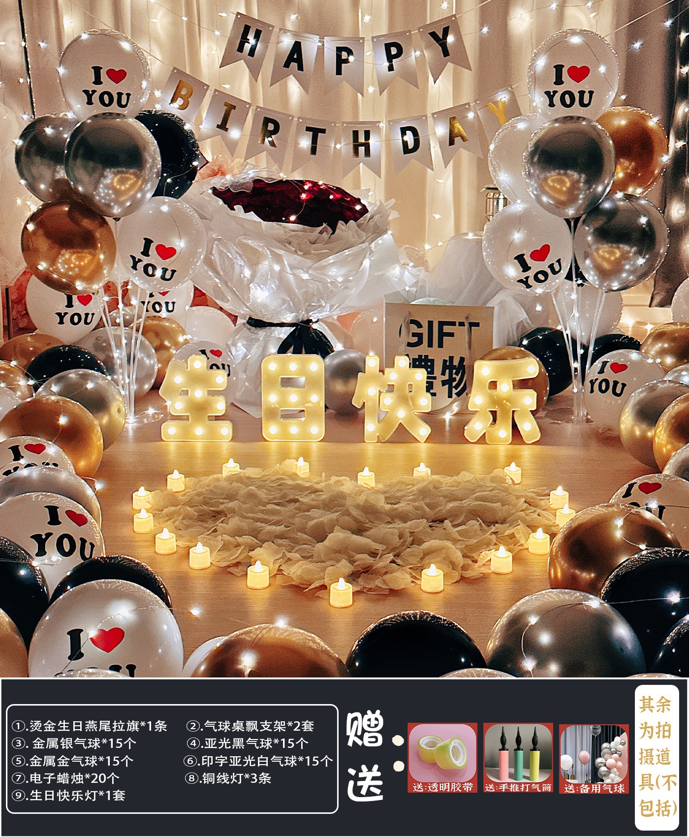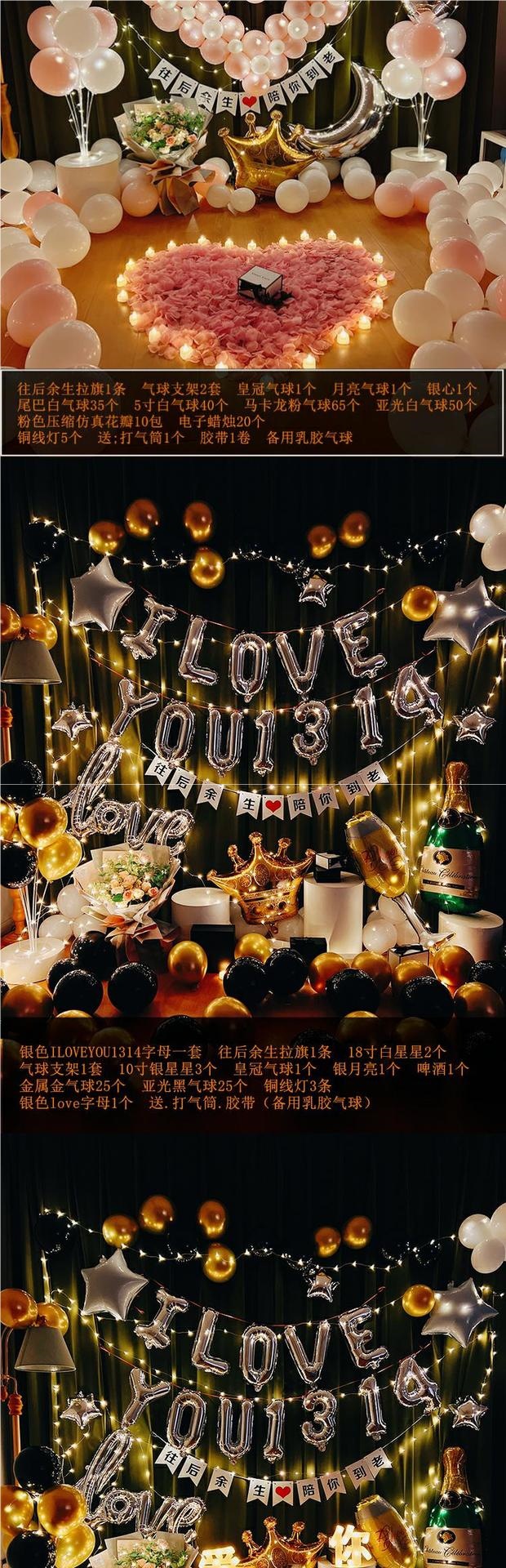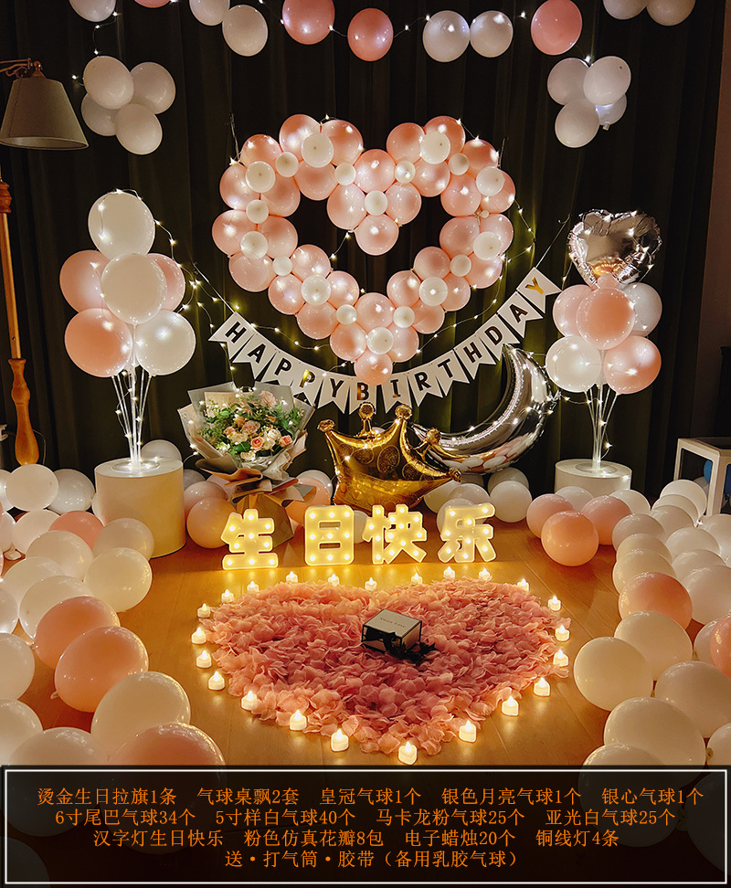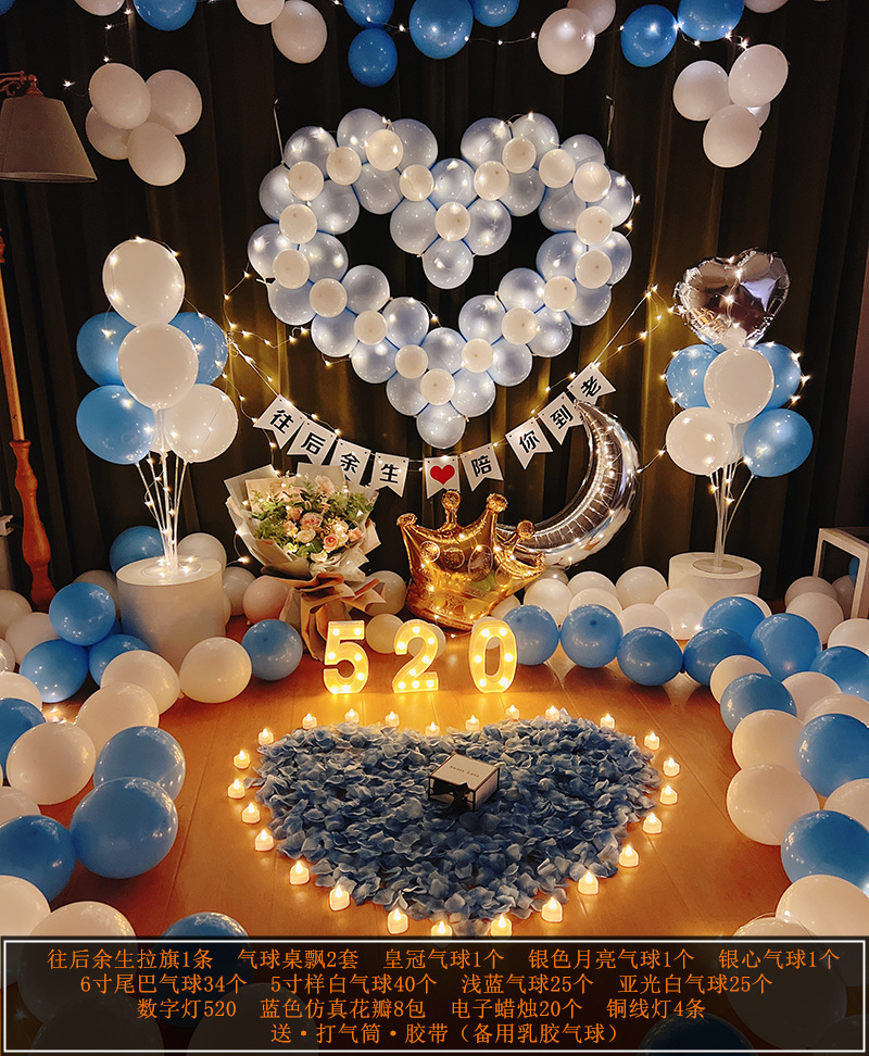 기념일 서프라이즈 낭만적 인 장면 장식 Tanabata 발표 LED 제안 풍선 배경 벽 배치