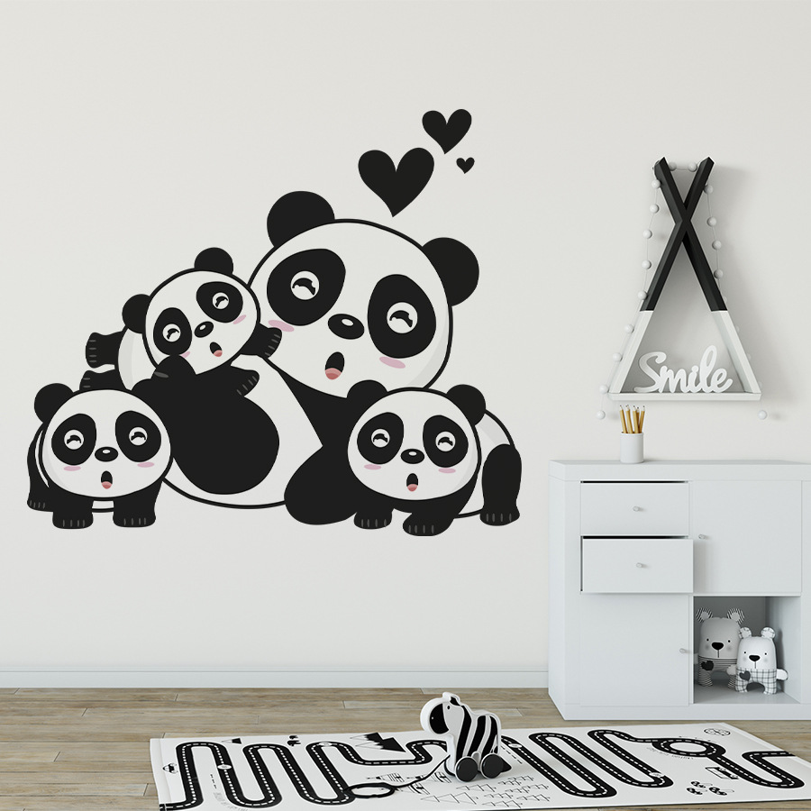 BR3377Q 귀여운 만화 팬더 가족 자기 접착 벽 스티커 침실 어린이 방 유치원 장식 스티커스토어 가기