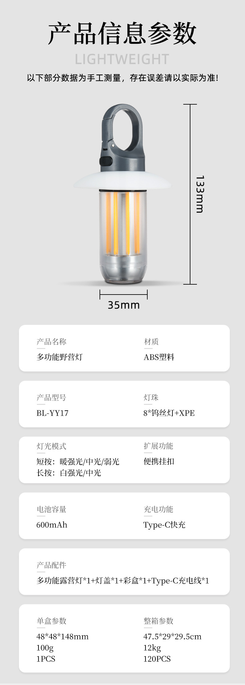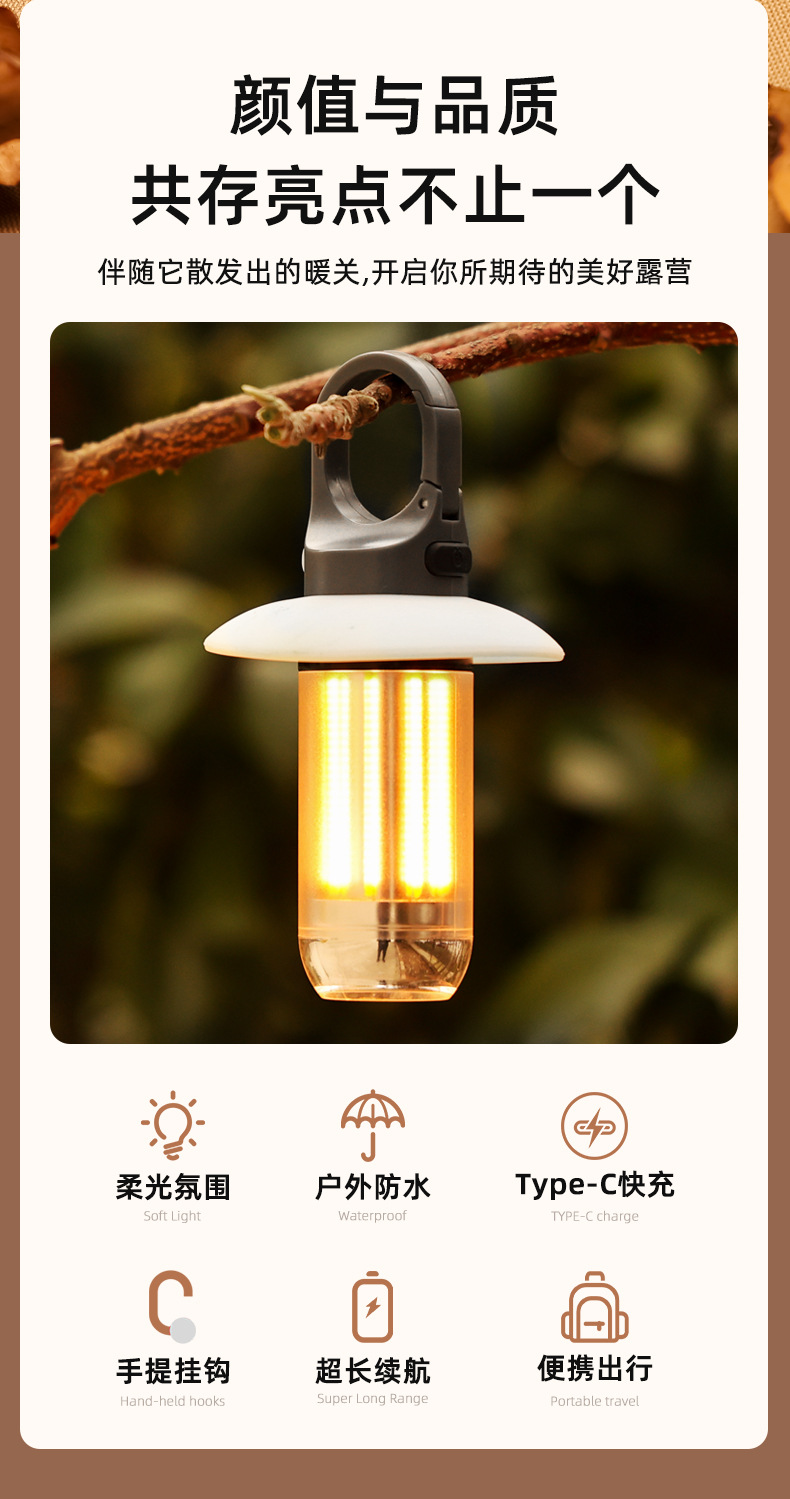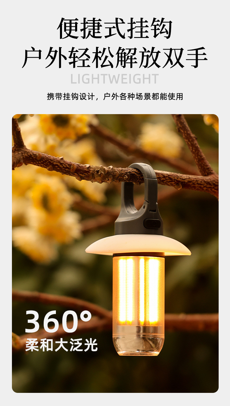 휴대용 다기능 캠핑 램프 듀얼 광원 일체형 손전등 야외 분위기 텐트 램프 캠핑 램프 분위기 조명
