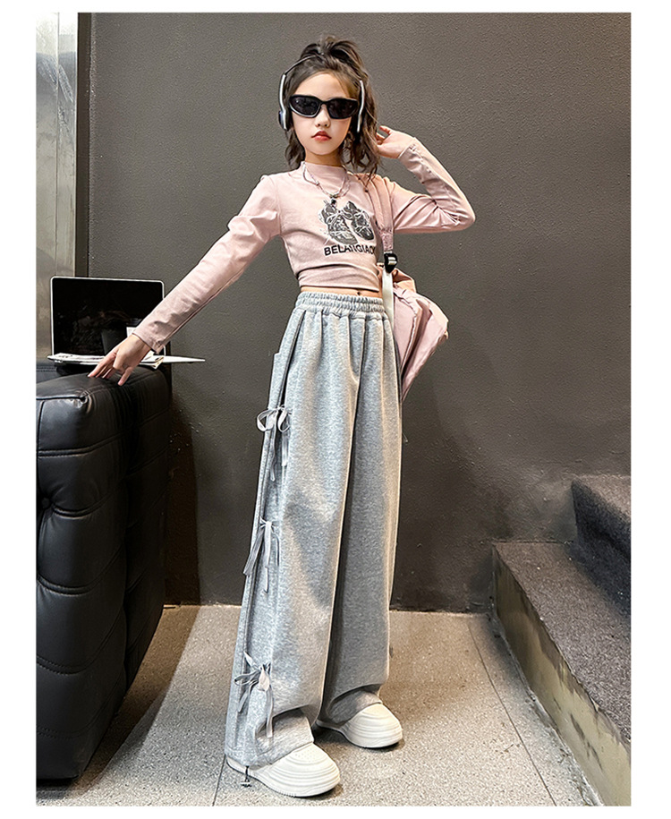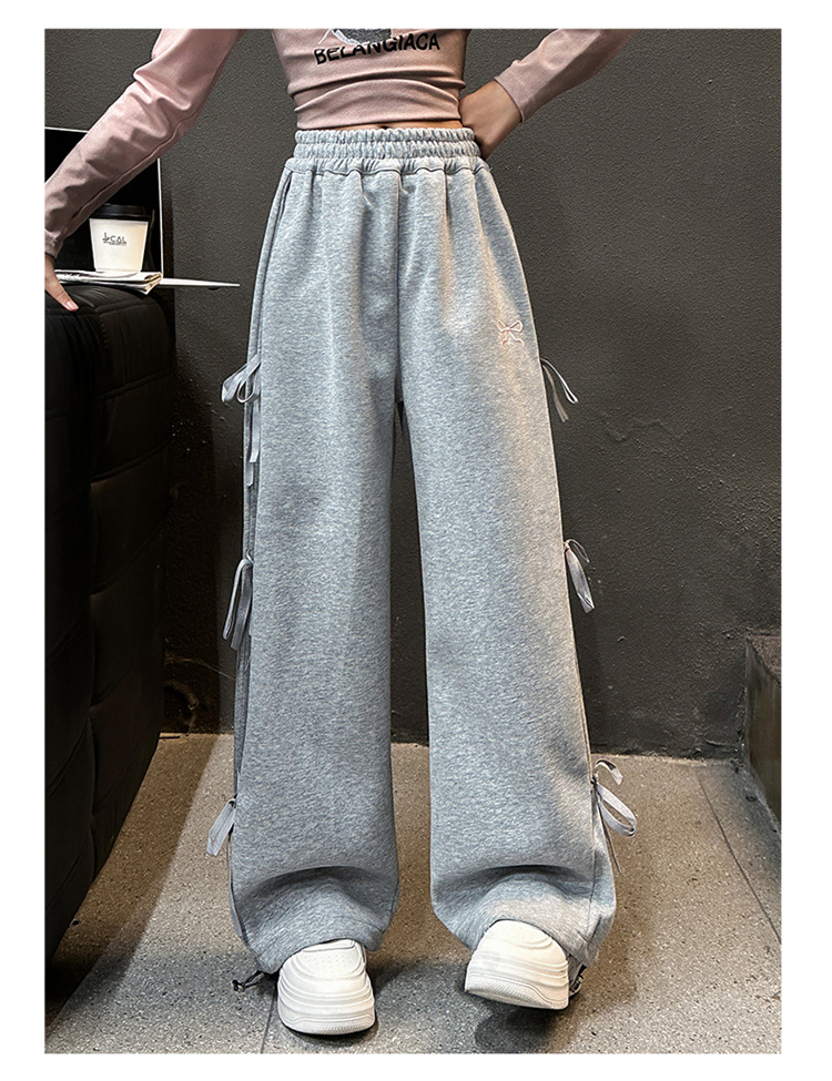 소녀의 봄과 가을 캐주얼 스웨트 팬츠 2025 새로운 스타일 큰 어린이 세련된 활 넓은 다리 바지 올매치 유행 니트 바지 트렌디스토어 가기