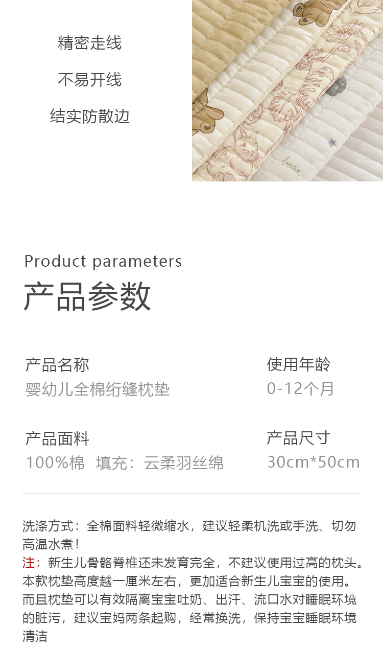 婴幼儿全棉绗缝枕垫