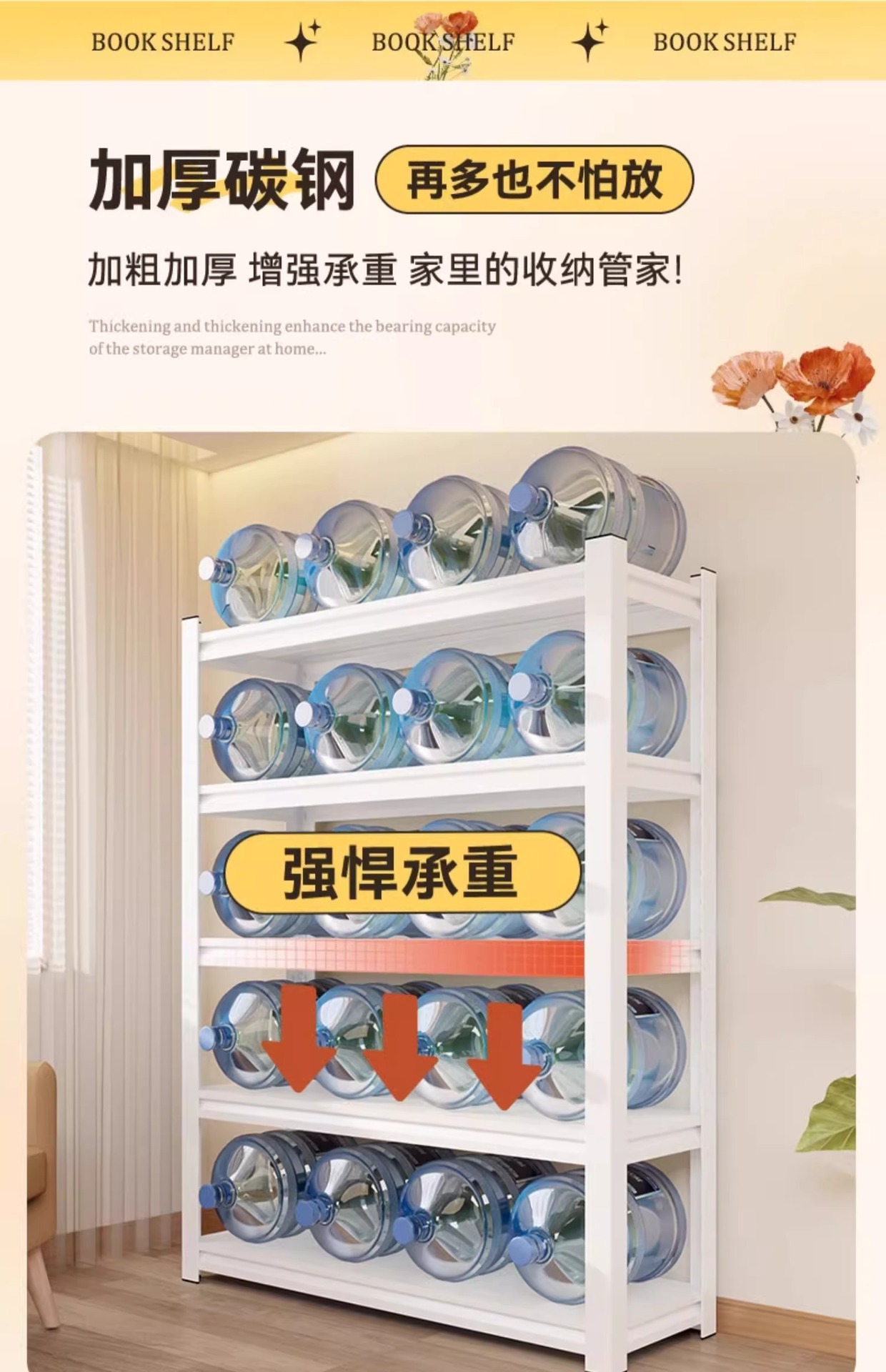 선반 저장 랙 바닥 다층 강철 책장 발코니 거실 연구 저장 랙 저장 랙 구멍 보드를 추가 할 수 있습니다스토어 가기
