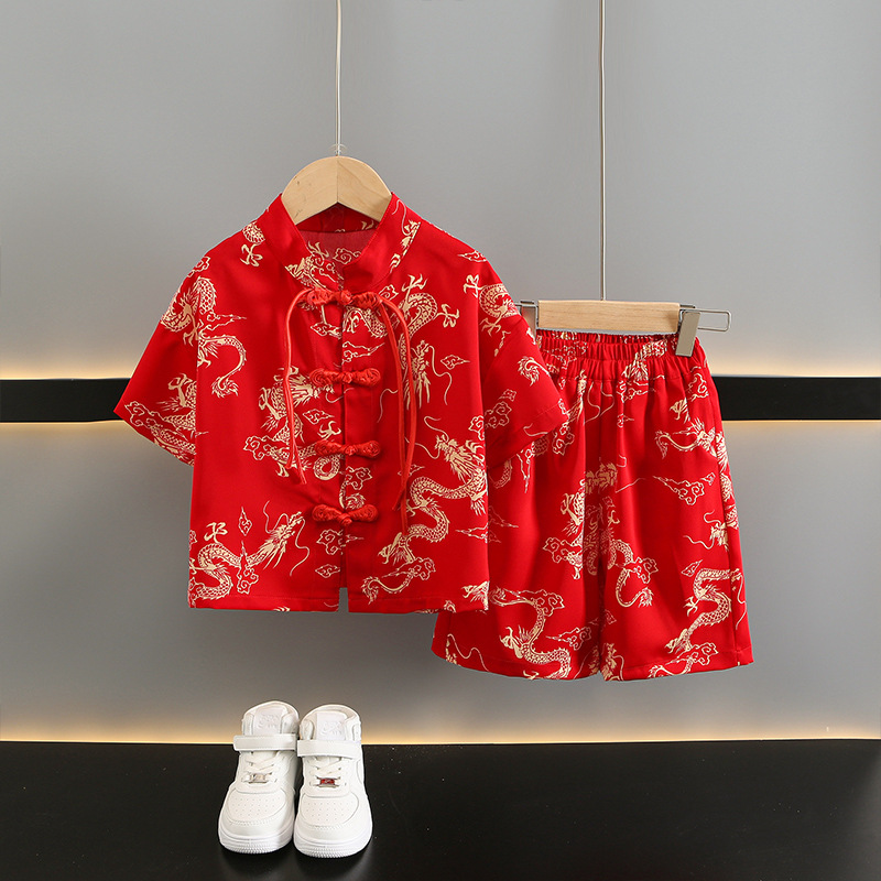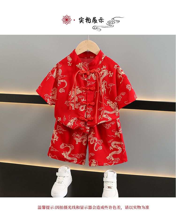소년 한푸 여름 얇은 세트 중국 스타일 당나라 세트 잘 생긴 소년 아기 여름 어린이 공연 새해 원피스