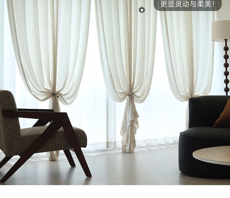 후풍사 투명하지만 사람을 보이지 않는 레트로 린넨 블랙 엣지 창문 커튼 거실 침실 발코니 신상 도매 커튼