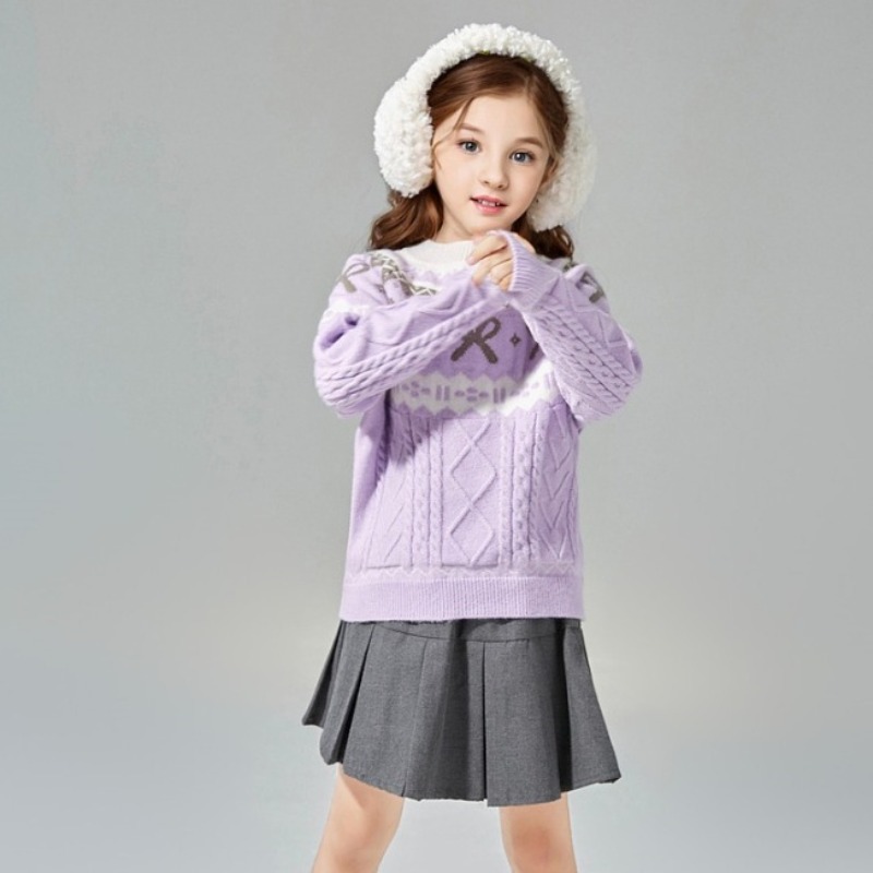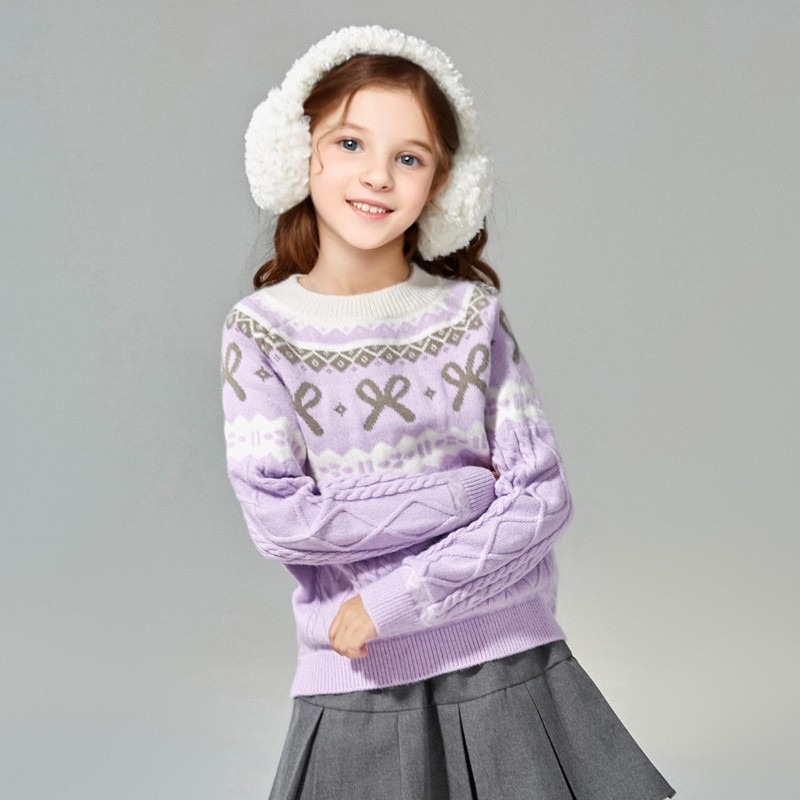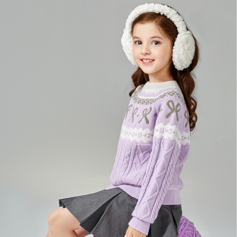 여아용 두꺼운 스웨터 2025 겨울 신상품 큰 아이 여아용 리본 니트 스웨터 아기 어린이용 따뜻한 스웨터