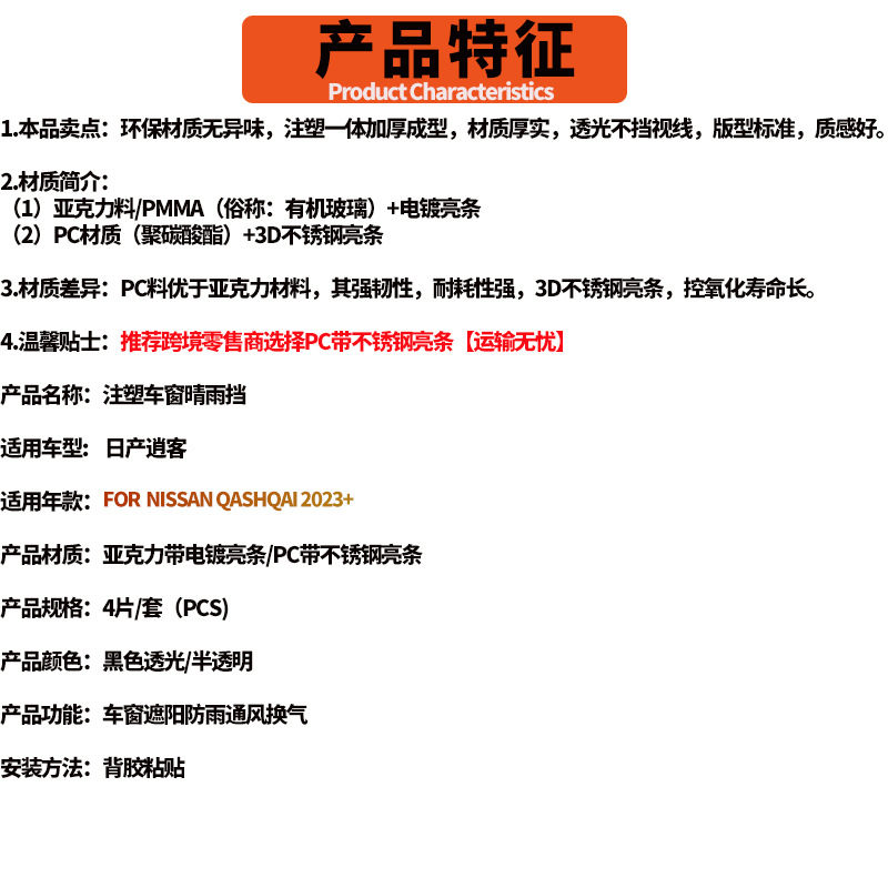 닛산 QASHQAI 2023 창 바이저를 위한 닛산 샤오 케 창 날씨 방패스토어 가기