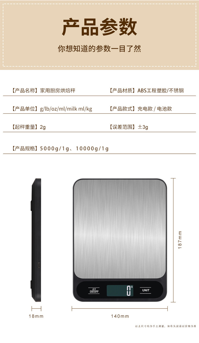 스테인레스 스틸 정확한 계량 주방 전자 저울 소형 가정용 베이킹 고정밀 그램 계량 주방 저울 국경 간 전용