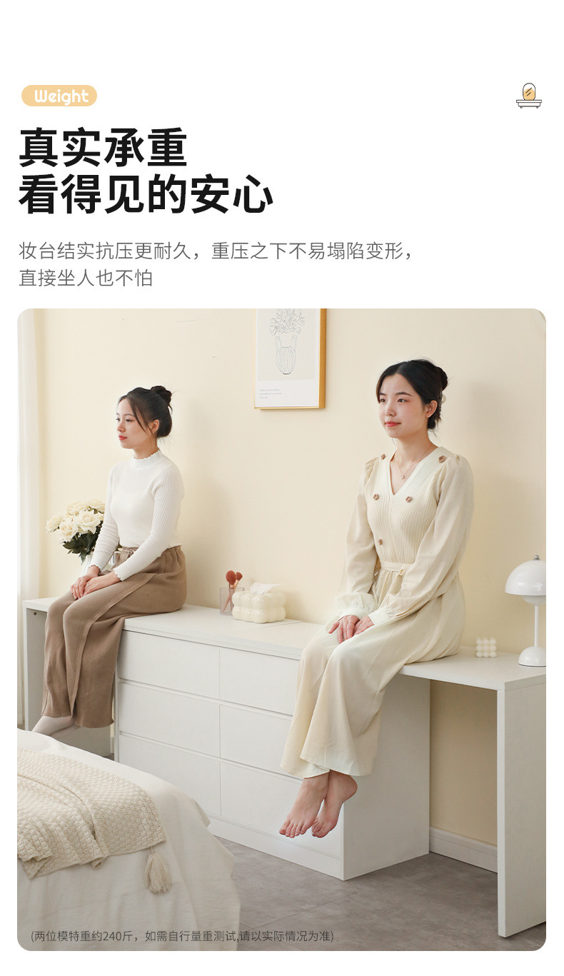 梳妆台斗柜一体卧室简约现代奶油风化妆桌化妆台收纳柜床尾柜实木