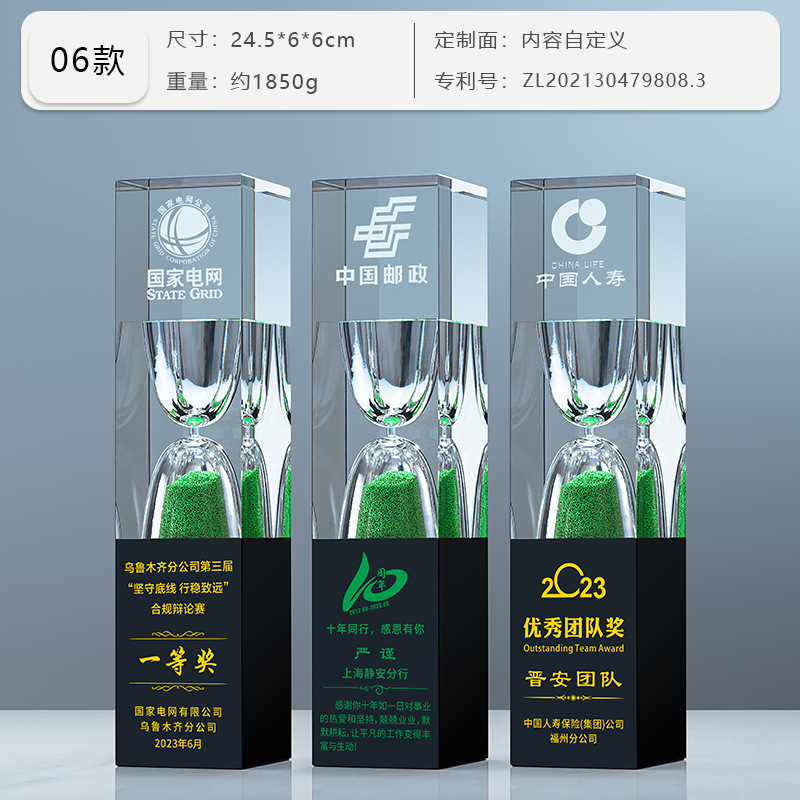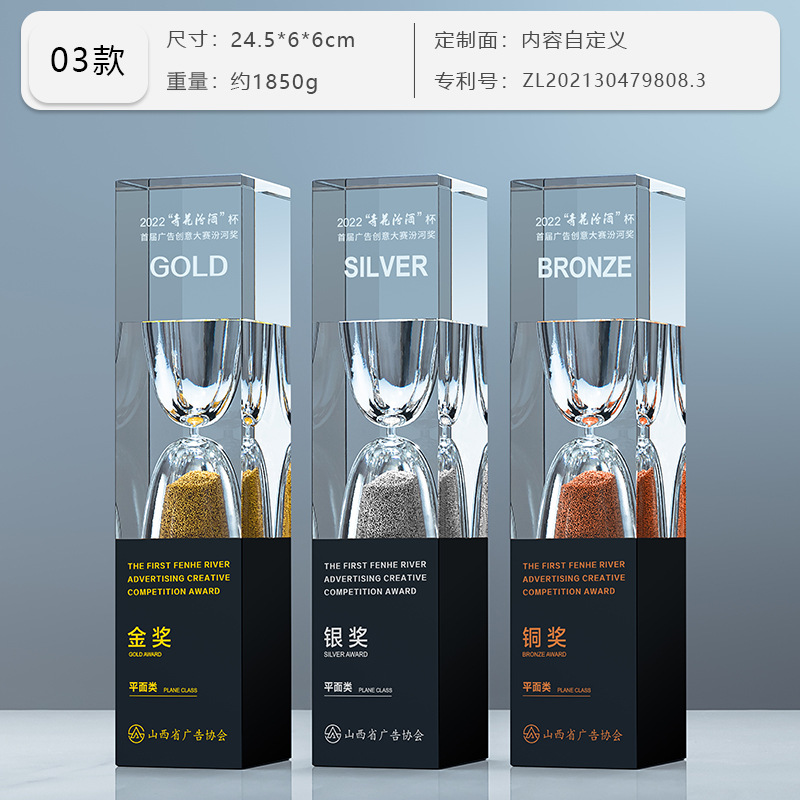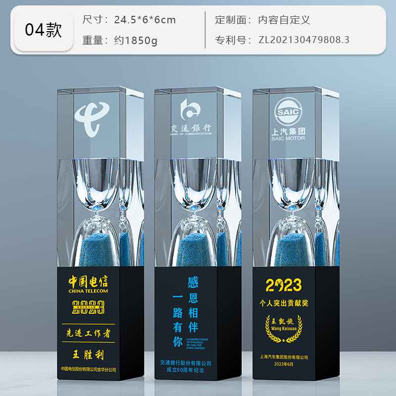 창의적인 모래 시계 크리스탈 트로피 유리 메달 분위기 팀 경쟁 레터링스토어 가기